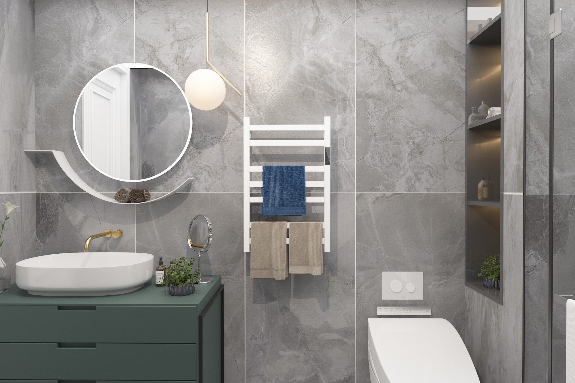 Dites adieu à la sensation de froid après la douche avec le sèche-serviettes DESICO, garantissant des serviettes toujours chaudes en 5 minutes. Avec son écran tactile intégré, ce modèle blanc vous permet de régler précisément la température et de programmer la minuterie entre 2 et 8 heures pour une salle de bain chaleureuse à votre convenance.