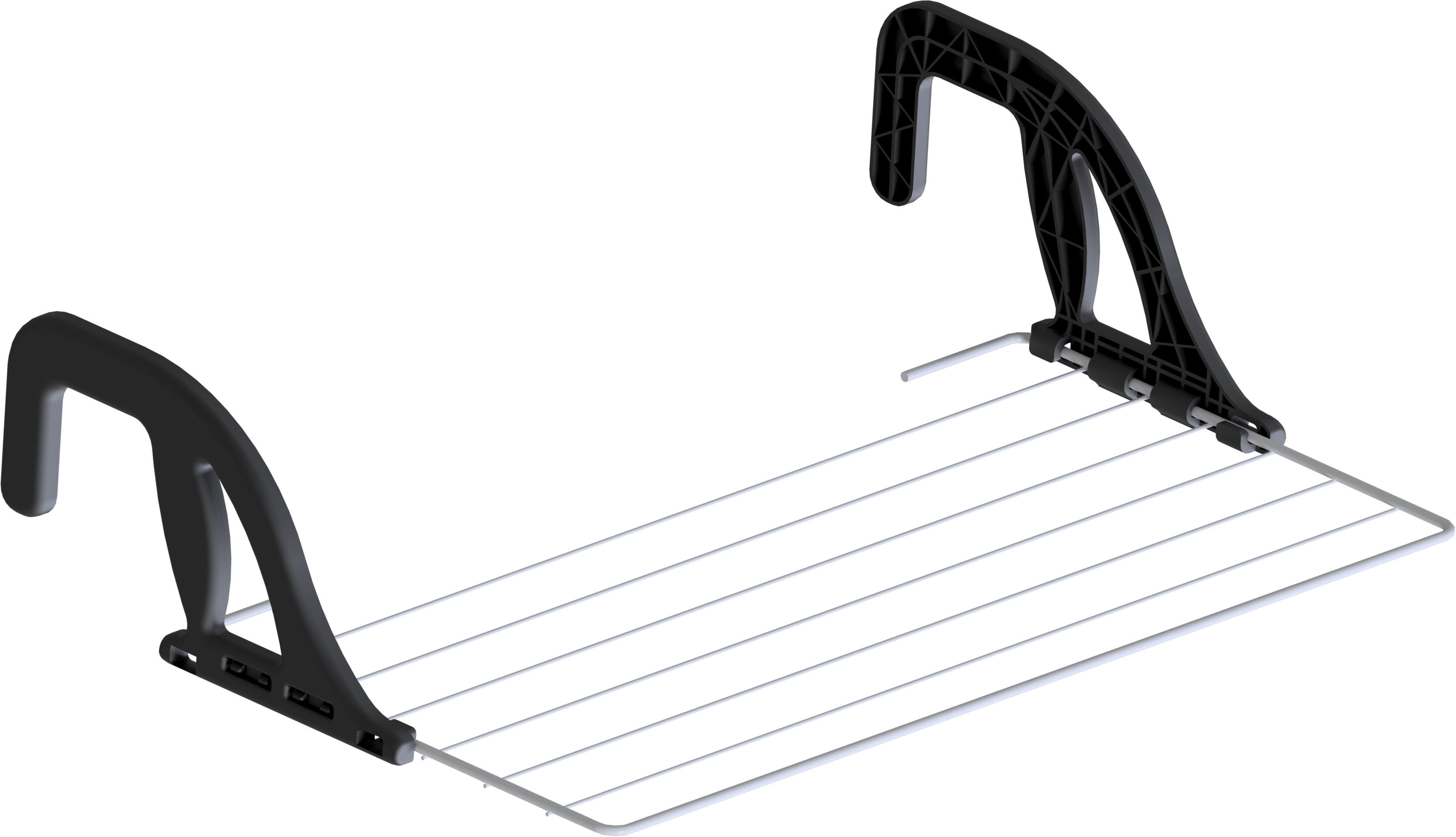 Bras de suspension en plastique : Ils peuvent se fixer à différentes positions sur la grille de manière à régler la distance nécessaire à la suspension du séchoir sur le support. Bras peuvent être repliés pour faciliter le rangement