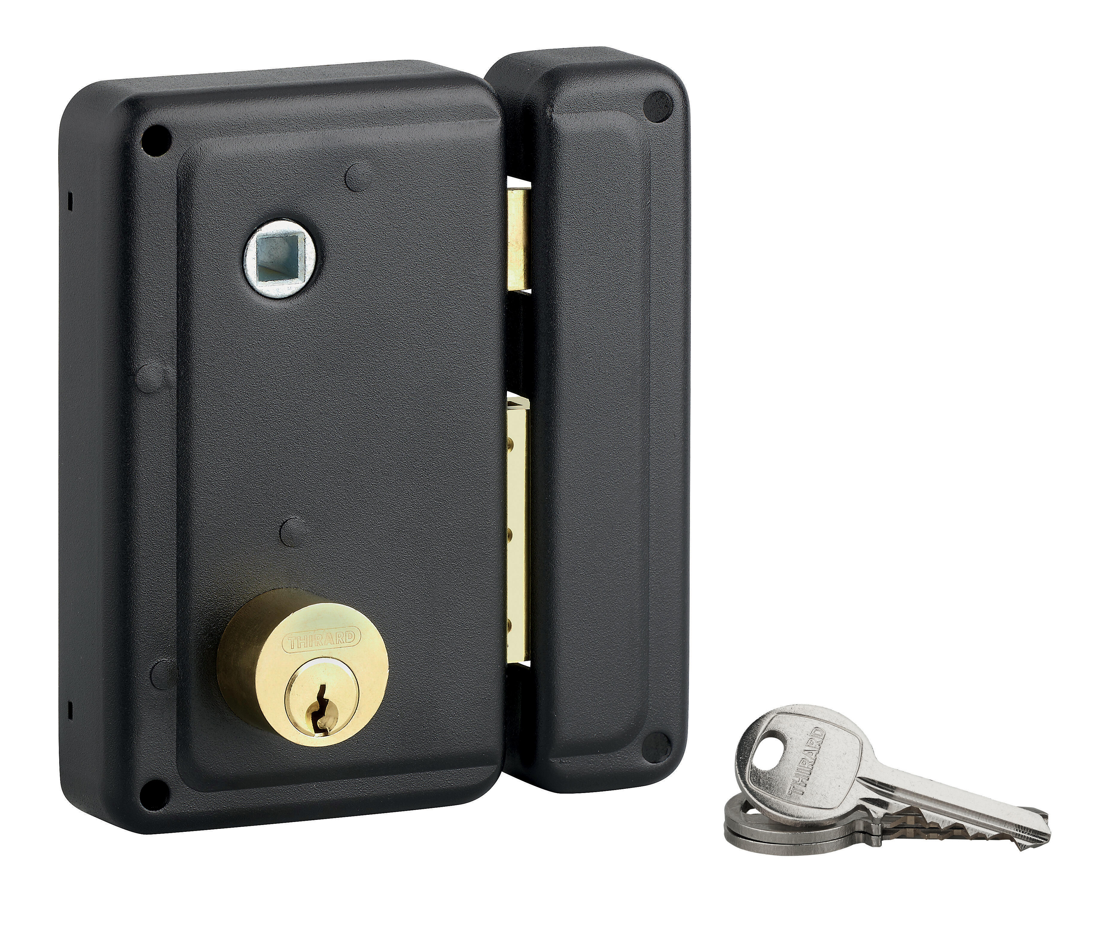 Serrure en applique THIRARD, 75 x 130mm, à poignée, vertical, ouverture à droite