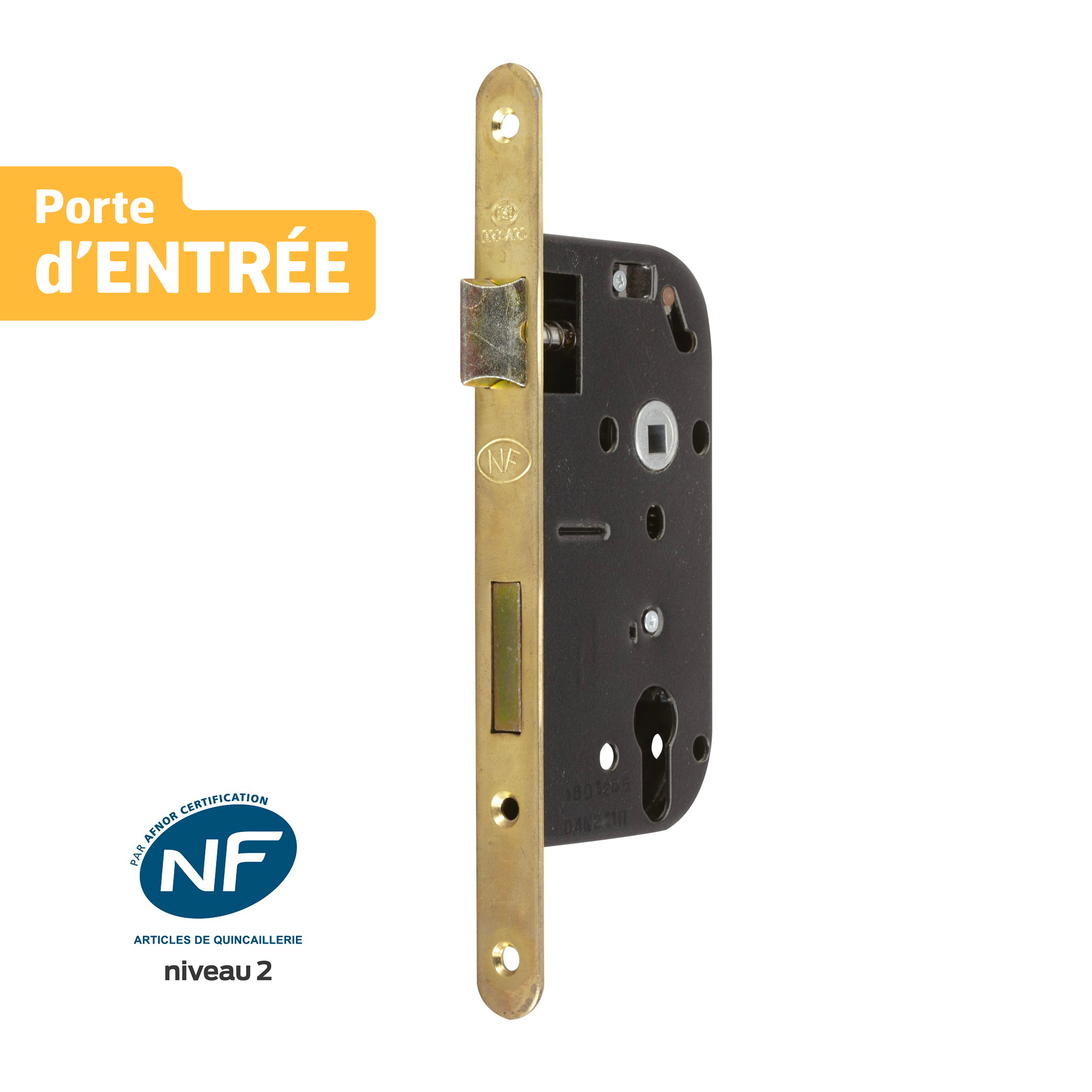 Serrure à mortaiser pour porte d'entrée à cylindre européen, certifiée NF. Réversible (droite ou gauche). Fournie avec vis de fixation. Cylindre et gâche non fournis. Cette serrure est certifiée conforme à la norme NF EN 12209:2004 : elle convient à un usage intensif (endurance testée à plus de 200 000 cycles) et résiste 96h à la corrosion (brouillard salin). Référentiel NF040 accessible sur www.marque-nf.com. Pourquoi choisir une serrure NF ? La certification NF est un gage de sécurité, fiabilité, performance et qualité. Nos serrures NF sont conçues pour durer, et garantissent résistance et utilisation optimale sur le long terme. La certification est délivrée par un organisme indépendant, et les contrôles sur notre lieu de production (France) sont réguliers pour garantir toujours le même niveau de qualité. Vous pouvez acheter en toute confiance !