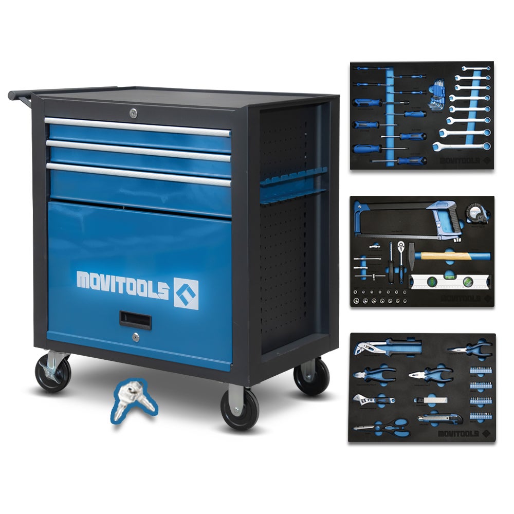 Servante d'atelier 3 tiroirs + espace de rangement + accessoires - Movitools