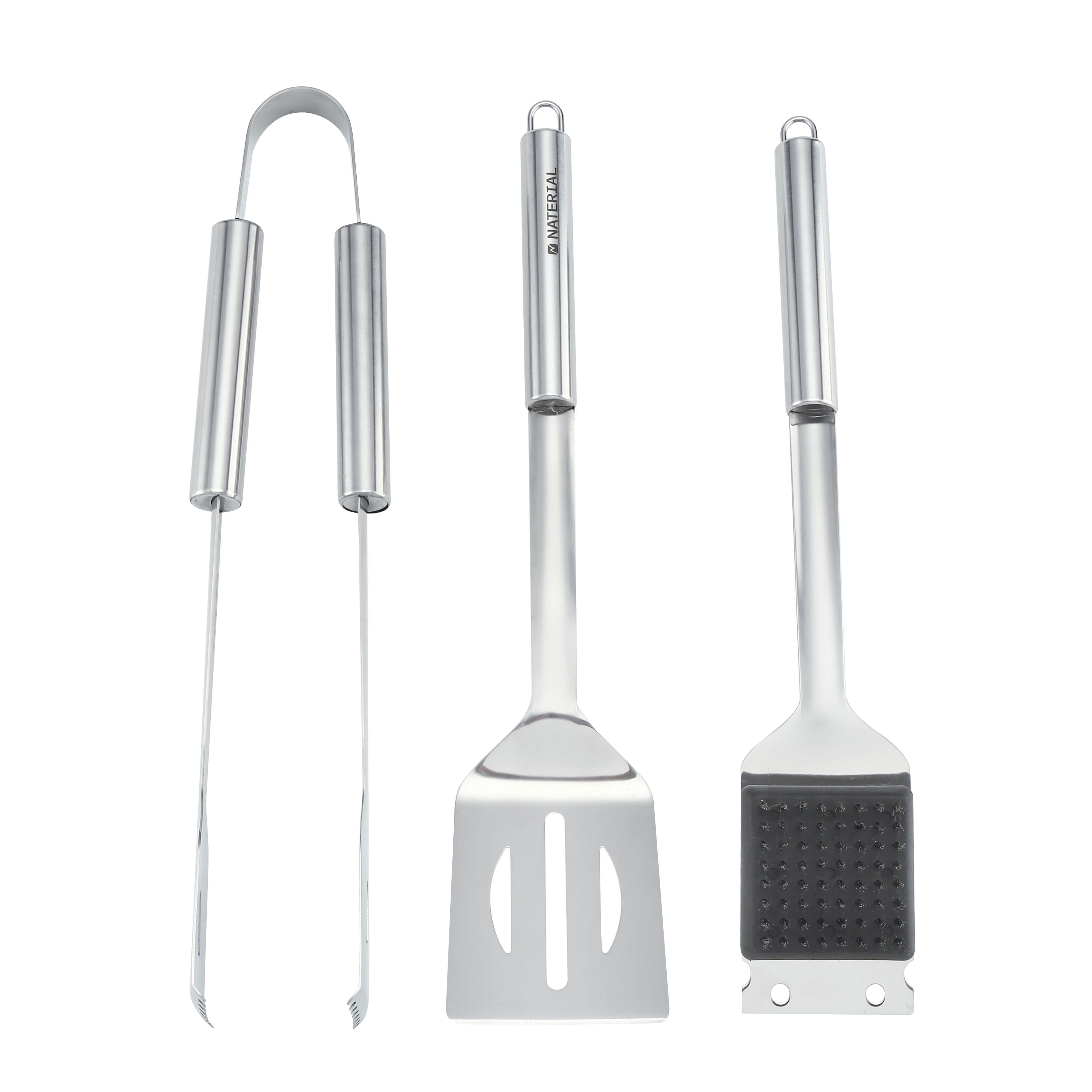 Ensemble de 3 accessoires pour barbecue. Contient: une paire de pinces, une spatule, une brosse. 2 ans de garantie