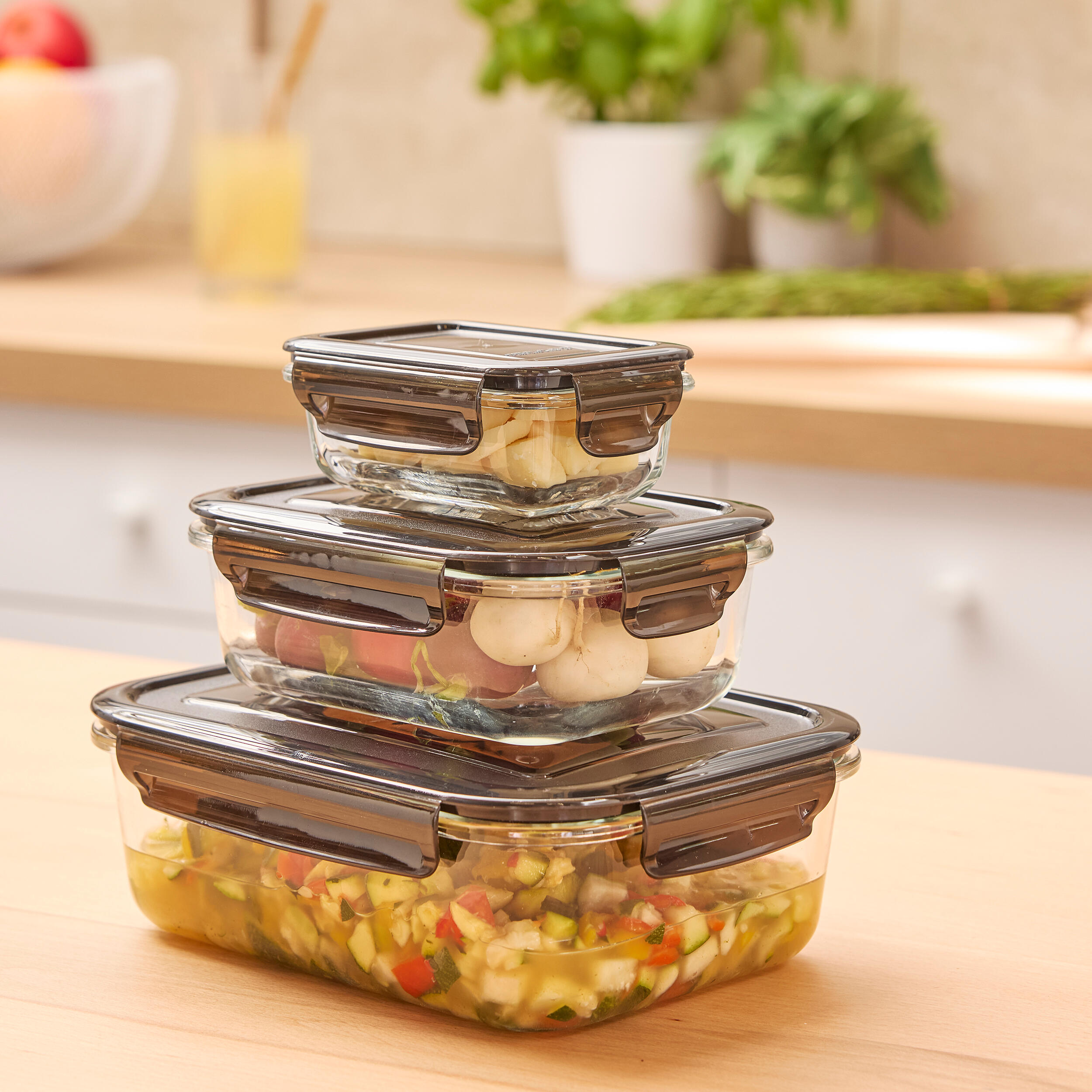 Set de 3 boîtes hermétiques en verre DELINIA, couvercles noir