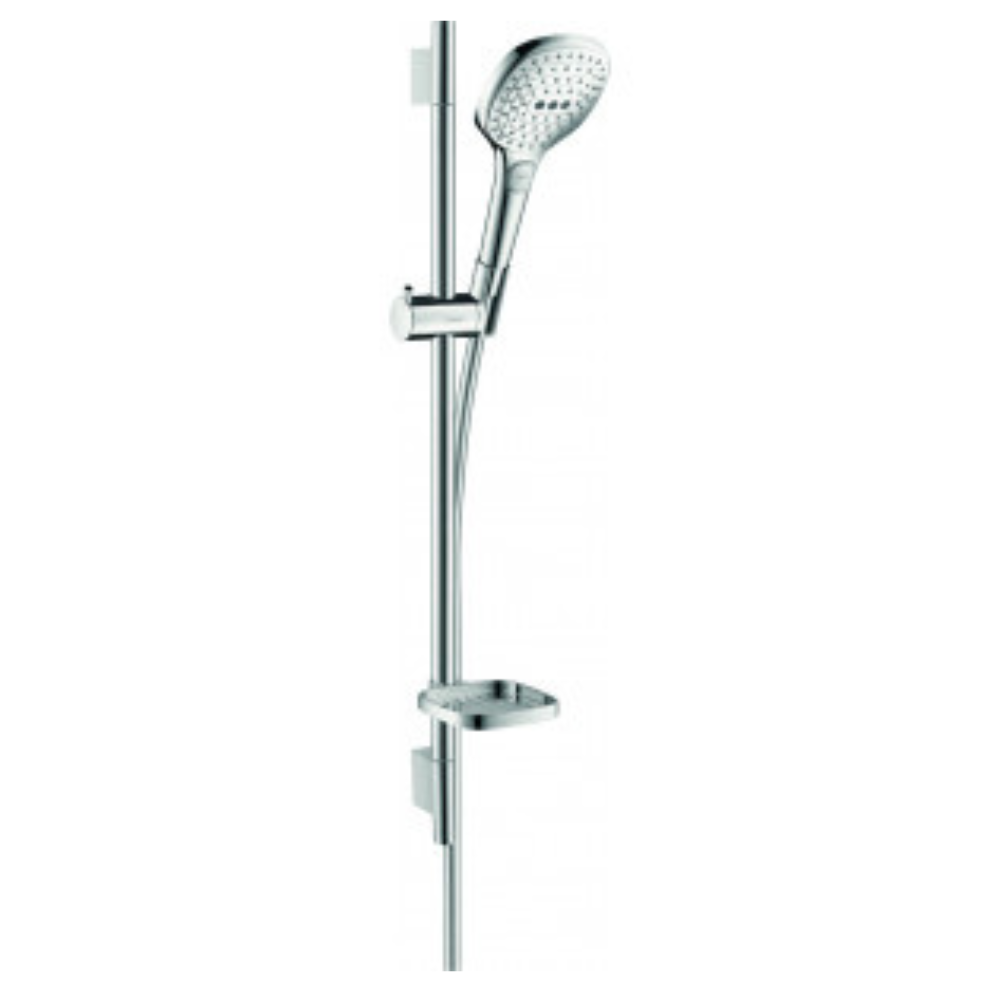 Set de douche 120 3jet EcoSmart 9 l/min avec barre Unica'S puro 65 cm et porte-savon chromé Hansgrohe Raindance Select E