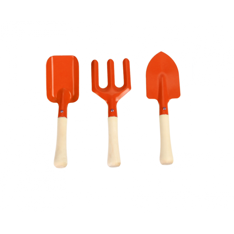 Le set comprend une fourchette, une truelle et une pelle.