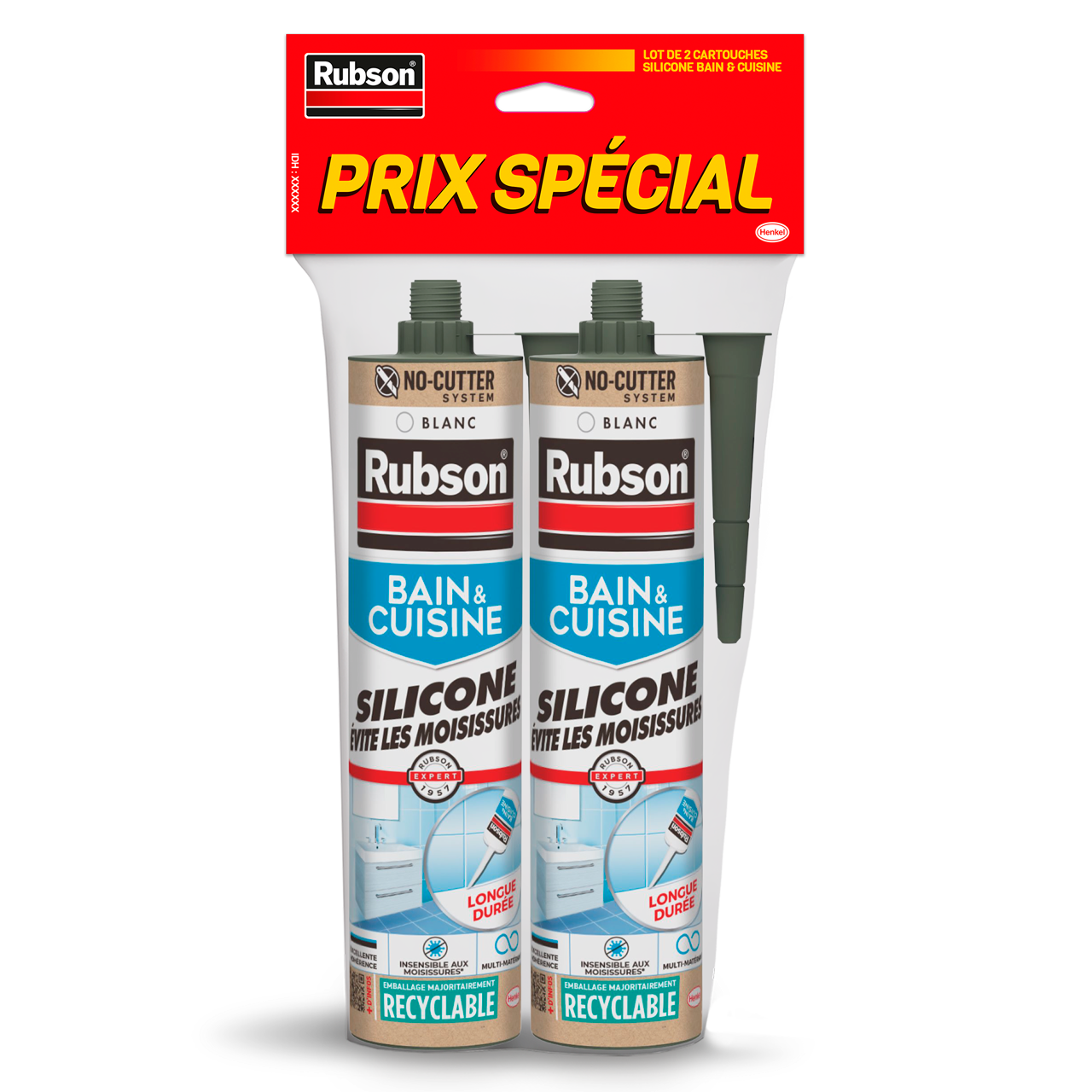 RUBSON Mastic Bain & Cuisine Silicone Évite les Moisissures pour des joints protégés et durables ! Ce mastic sanitaire est un mastic à base d’élastomère silicone renforcé en antifongiques, qui résiste aux moisissures. Grâce au No Cutter System (nouveau bouchon et canule prédécoupée), l’application est plus simple, propre et jusqu’à 33 % plus rapide. Il s’utilise dans la cuisine, la salle de bain ou les sanitaires pour des joints d’étanchéité ou de raccordement d’évier, de douche ou de lavabo avec des murs carrelés et des meubles encastrés. Il adhère sur la plupart des matériaux sanitaires : émail, porcelaine, verre, grès, faïence, etc. Après usage, adoptez le nouveau geste de recyclage en déroulant l’étui en carton. Ce mastic est donc le produit idéal pour des joints de cuisine et salle de bain réussis et durables !