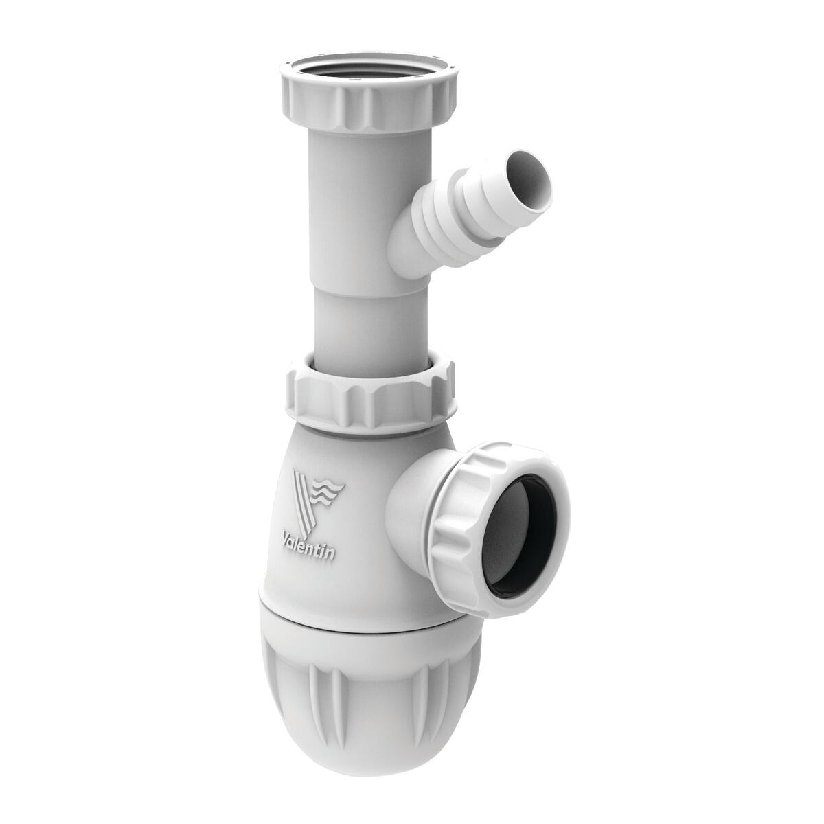 Siphon lavabo plastique, Avec prise machine à laver ou trop-plein, qui permet de se raccorder sur une évacuation en diamètre 32. Il a une hauteur réglable de 92 à 136 mm. Sa hauteur sous lavabo se situe entre 174 à 218 mm. Il dispose d'une garde d'eau de 50mm et assure un débit de 51 l/mn. Il est certifié NF.