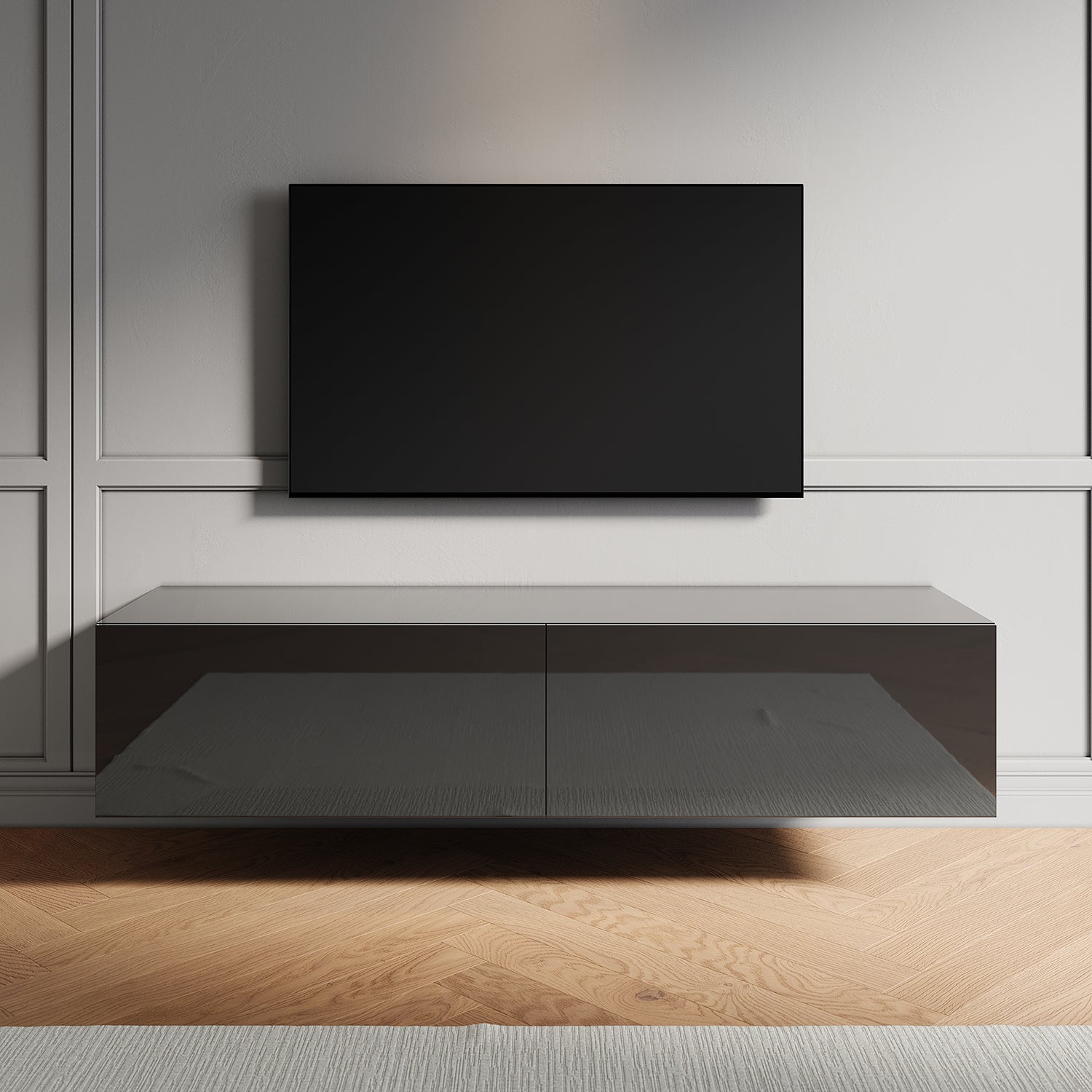SIRHONA Meuble TV Grand Rangement Moderne Sans Poignées + 2 Portes + Noir + 140 cm