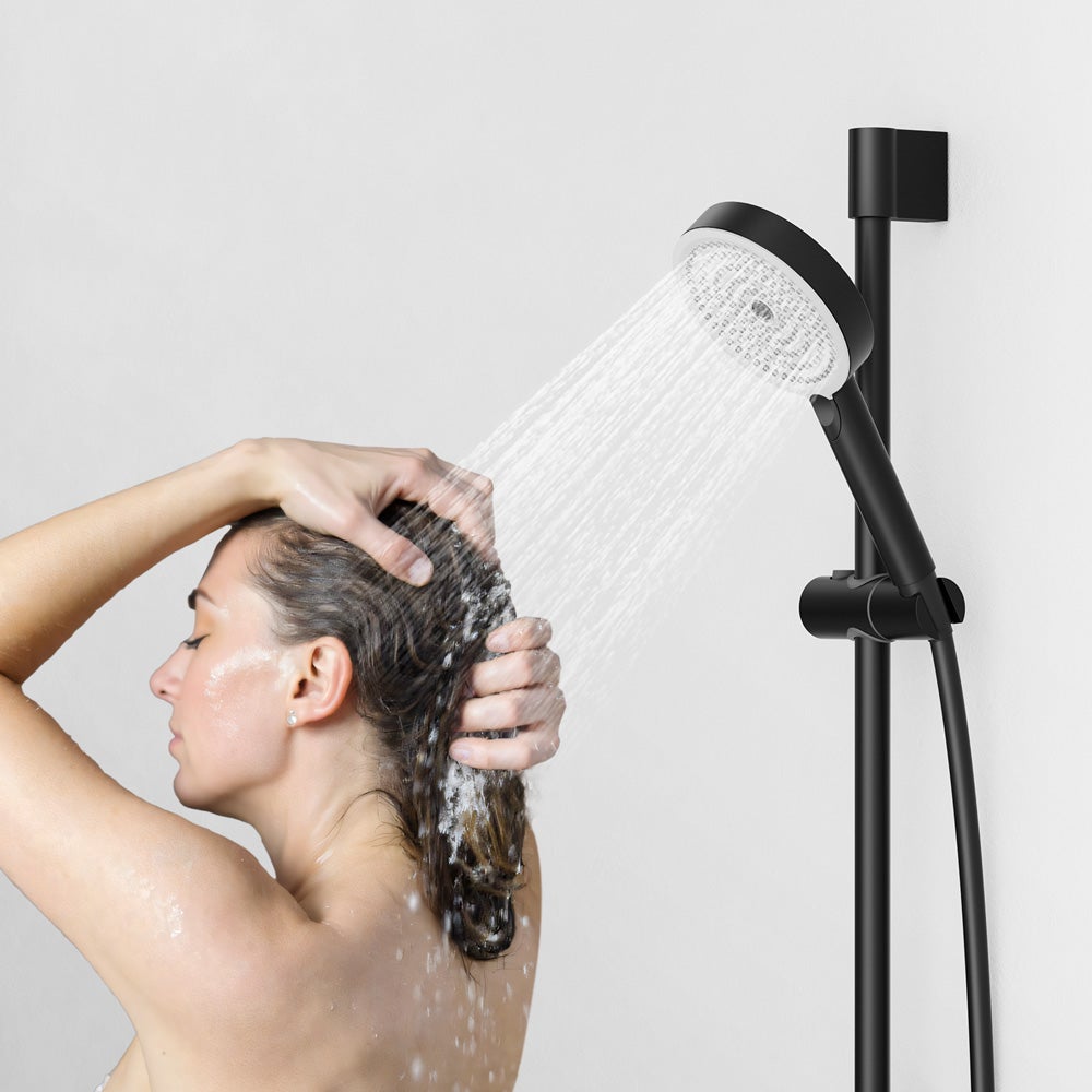 [Réglage de la hauteur et de l'angle] La Barre de Douche peut être allongée jusqu'à 65 cm et le support coulissant peut être déplacé et verrouillé librement. La douche rotative à 360° peut répondre aux besoins de chaque membre de la famille avec des hauteurs et des angles de douche différents.