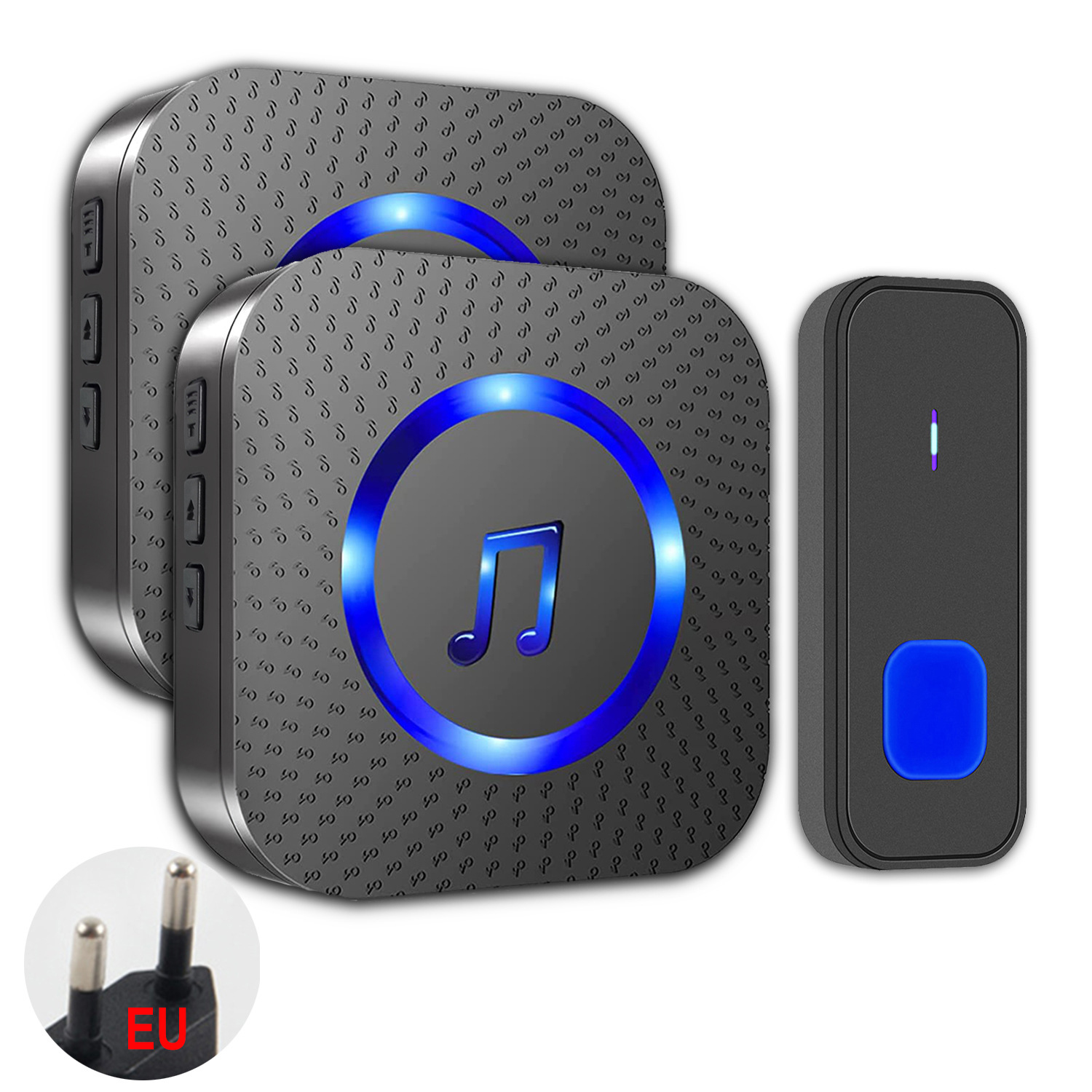 Sonnette sans fil, portée 400 m, étanchéité IP55, 55 mélodies, 5 niveaux de volume, voyant LED, pour la maison et l'hôtel (1 émetteur + 2 récepteurs)