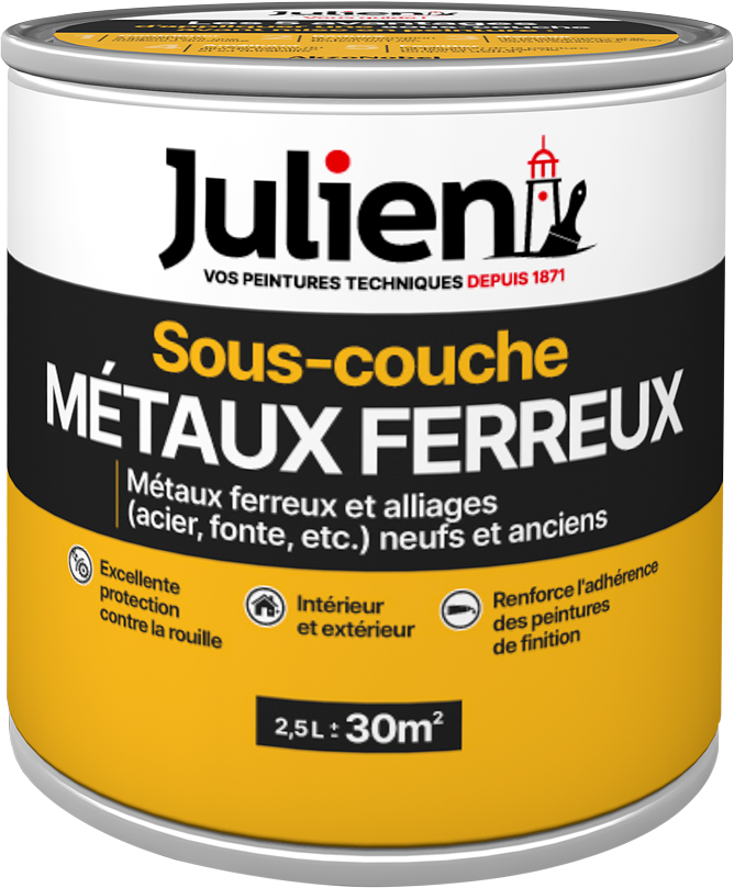 La sous-couche métaux ferreux JULIEN est une protection antirouille longue durée qui protège tous les éléments en métaux ferreux et alliages (acier, fonte, etc.) neufs ou anciens.