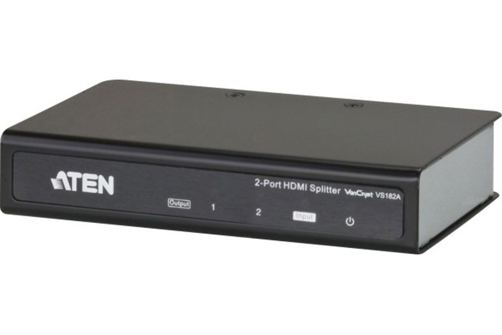 Splitter hdmi 2 sorties Aten VS182ALe splitter HDMI Aten VS182A permet de diffuser vidéos sur deux écrans en même temps. Un répartiteur HDMI duplique le signal HDMI entrant et de le fait ressortir en simultané sur deux sorties. Ceci est très utile, si vous avez plusieurs écrans dans différentes pièces de bureau ou de votre maison ou encore un home cinéma. Un autre bon exemple d'utilisation, est celui de la retransmission d'un match dans un bar. Avec un splitter HDMI 2 sorties vous pourrez diffuser le match sur deux écrans en simultanés au bar et au fond de la salle.Points forts du splitter HDMI 2 sorties Aten VS182A :- Permet de connecter une source HDMI à deux périphériques d'affichage HDMI en même temps.- Prend en charge une largeur de bande jusqu'à 340 MHz pour de hautes performances vidéo- Prend en charge des résolutions allant jusqu'à Ultra HD 4k x 2k et 1080p Full HD- Prise en charge du son Dolby True HD et DTS HD Master Audio- Transmission longue distance : jusqu'à 15 m (24 AWG)- Compatible HDMI (3D, Deep Color, 4k x 2k) et HDCP1- Plug & Play : aucune installation de logiciel n'est requiseSpécifications :- Compatible HDCP- HDMI (3D, Deep Color, 4K)- Connecteur d'entrée vidéo : 1 HDMI type A femelle- Connecteurs de sortie vidéo : 2 HDMI type A femelle- Débit de données maxi: 10.2 Gps (3.4 Gbps par voie)- Horloge pixel maxi. : 340 MHz- Distance : jusqu'à 15m- Matériel du boîtier : métal- Poids : 0.31 kg Contenu de la boîte :- 1 répartiteur HDMI à 2 ports- 1 adaptateur secteur- 1 câble HDMI- 1 manon équipéel d'utilisation
