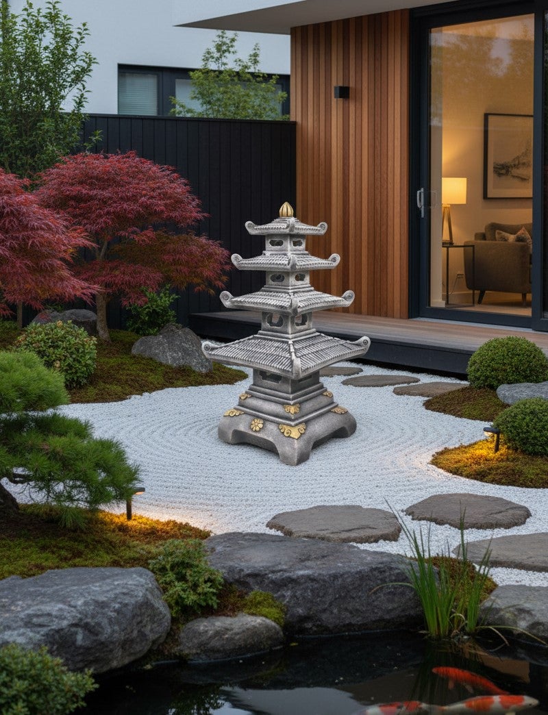 Statue Pagode 48x89cm. Betón - Pierre. Mousse grise
