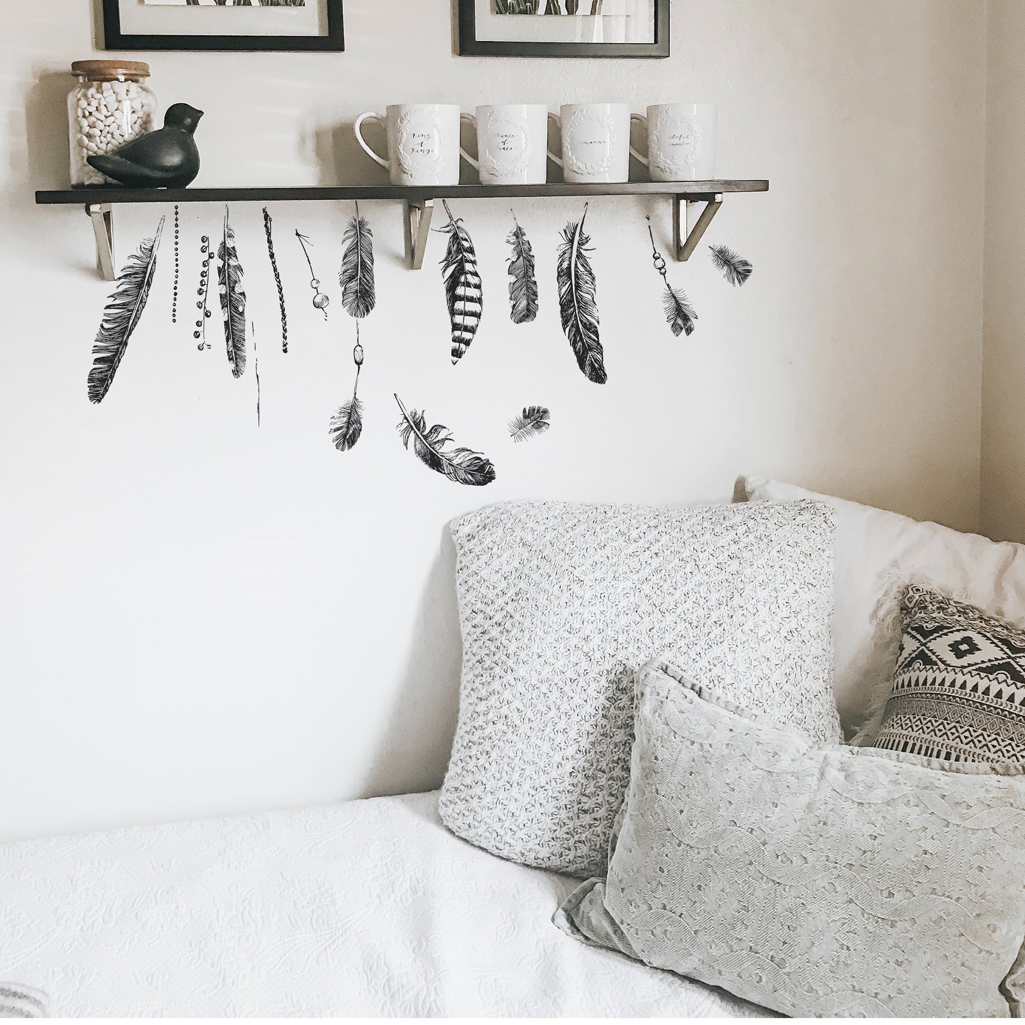 Sticker autocollant décoratif, illustration de plumes noires dans un style attrape rêve, 68 cm X 24 cm