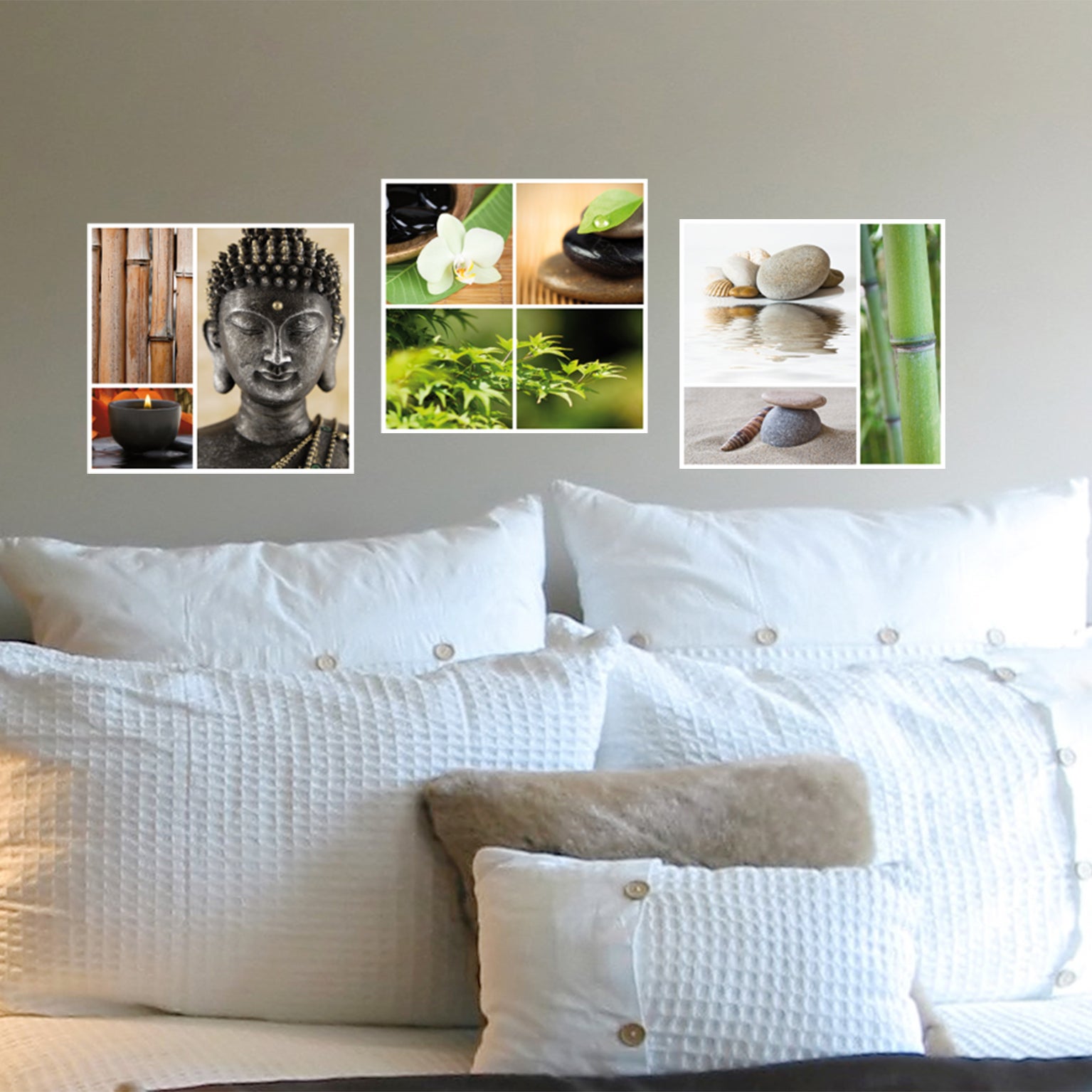 Sticker autocollant décoratif, photo déco zen avec un bouddha, une orchidée, du bambou, la nature, et ses galets puis les coquillages, 68 cm X 24 cm