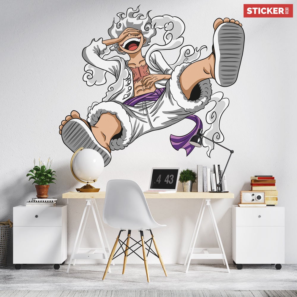 Décorez vos murs avec ce sublime Sticker Luffy Gear 5 ! Ce Sticker Luffy Gear 5 (Gia Fifusu) représentant la forme de Luffy obtenue grâce au pouvoir éveillé du Gomu Gomu no Mi ajoute une touche manga à vos murs.
