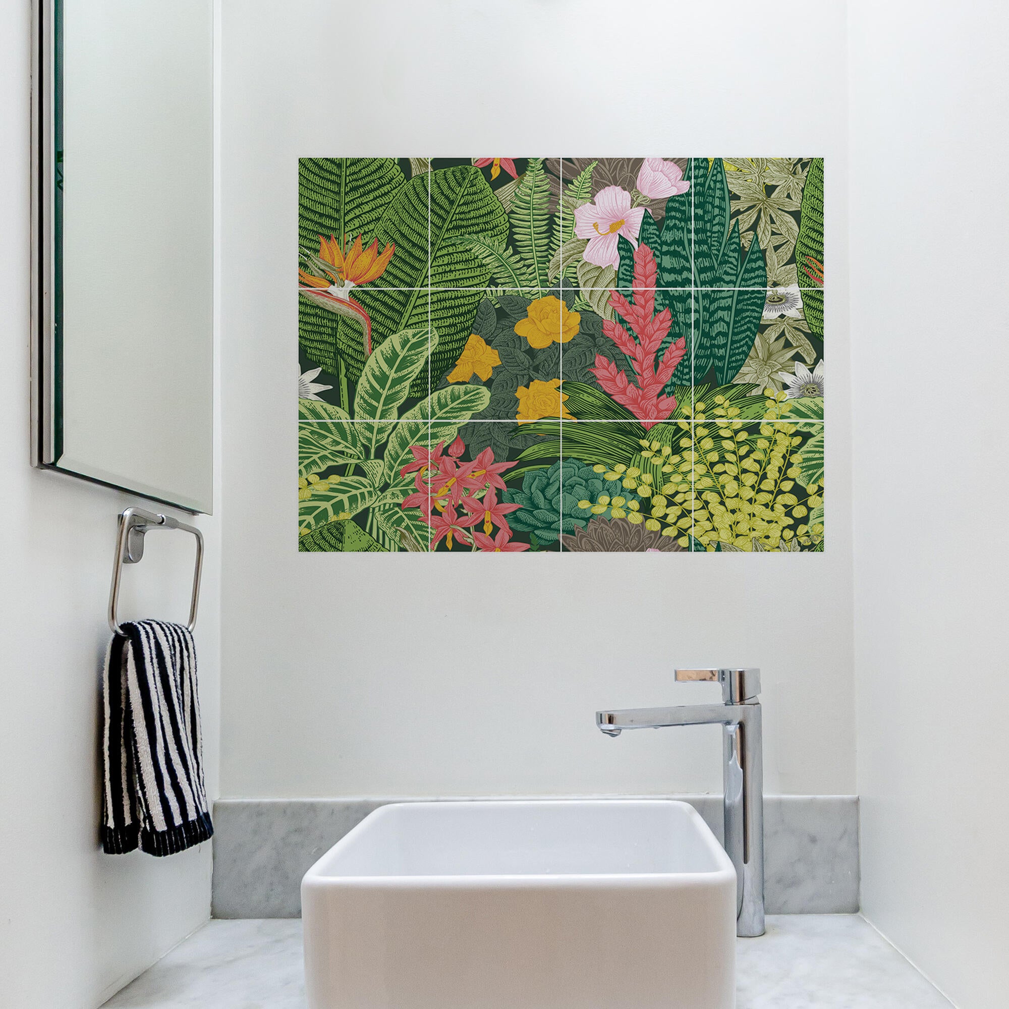 Fresque adhésive déco carrelage lessivable fleurs multicolores Dorotea, 12 carreaux 15x15cm par pack