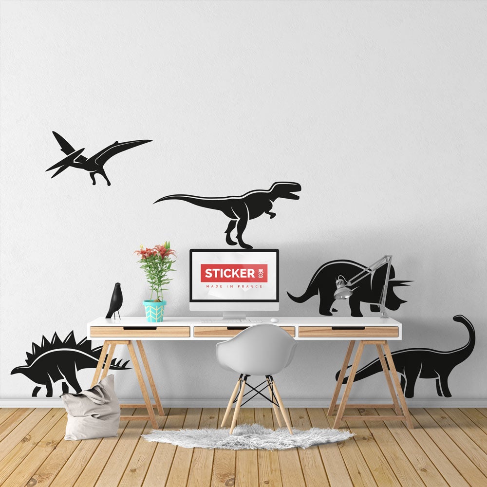 Stickers Dinosaures Silhouettes - XL (Largeur 120cm, Hauteur 75cm)