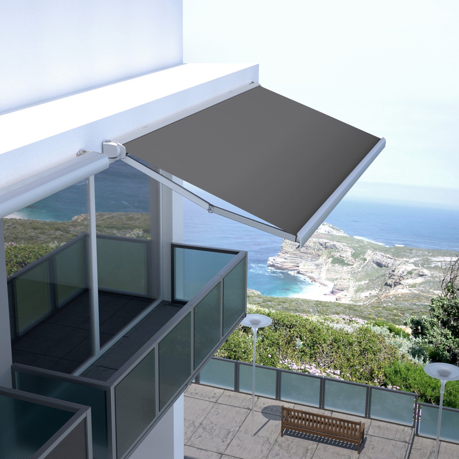 Ce store à coffre est disponible en plusieurs dimensions pour s'adapter à toutes les configurations, vous pourrez également choisir la couleur de votre toile parmi 9 nuances.