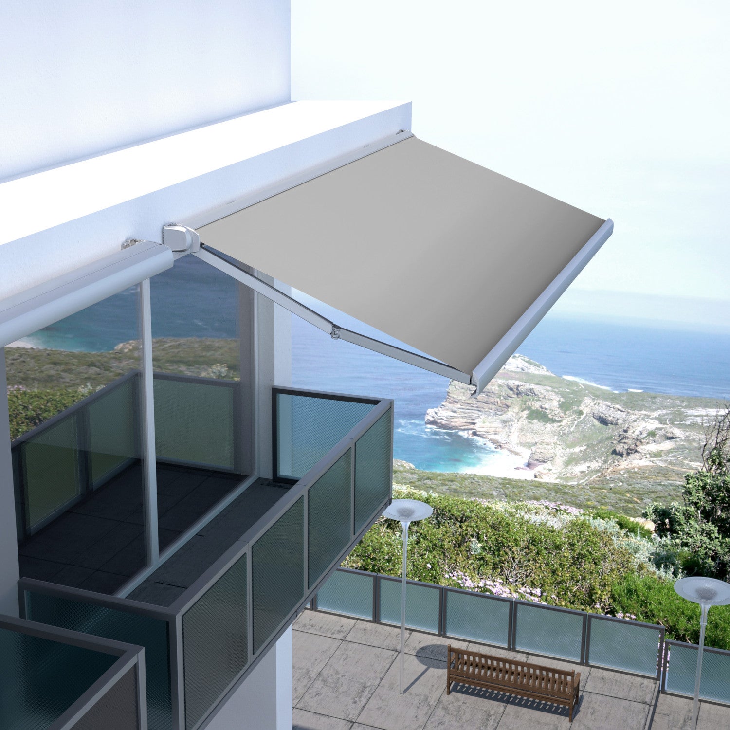 Dooya facilite l'utilisation du store banne avec un moteur smart control.