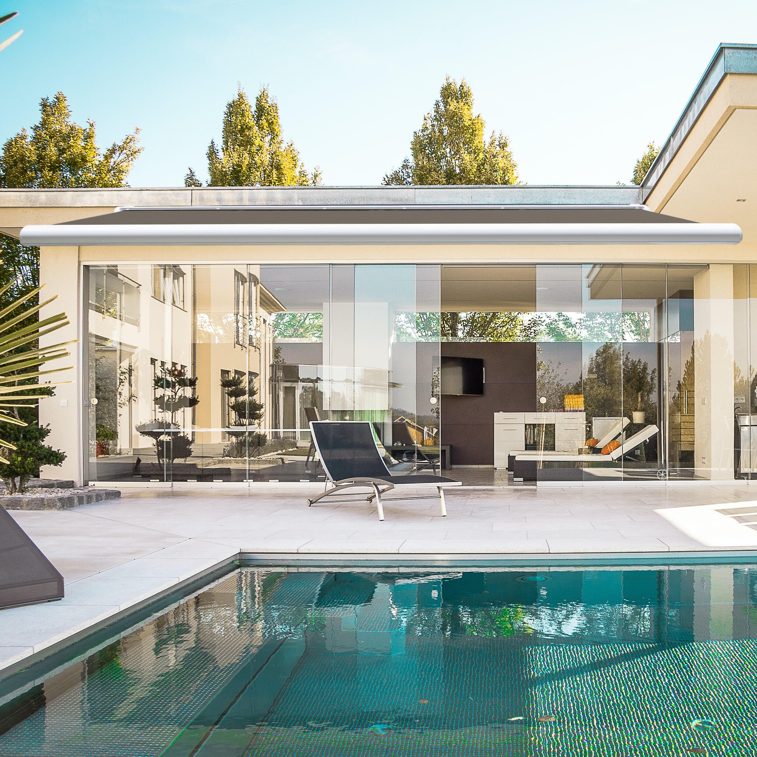 Store banne motorisé 5 x 3.5 m Aix2 XL qui rentre seul au bout de 30 min