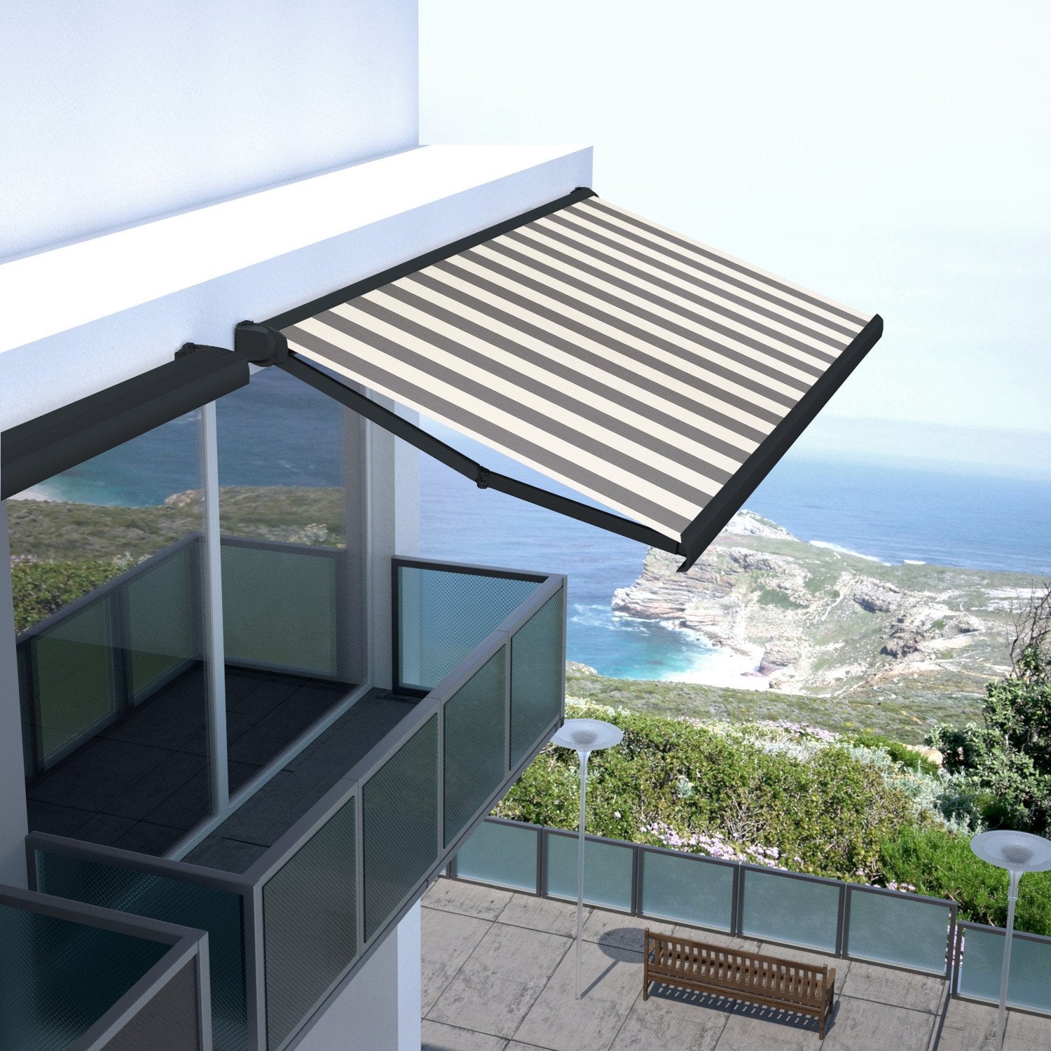 Store de Terrasse Coffre Intégral Solares Motorisé RAL Anthracite 3,93 X 3 Dickson® BLANC-GRIS