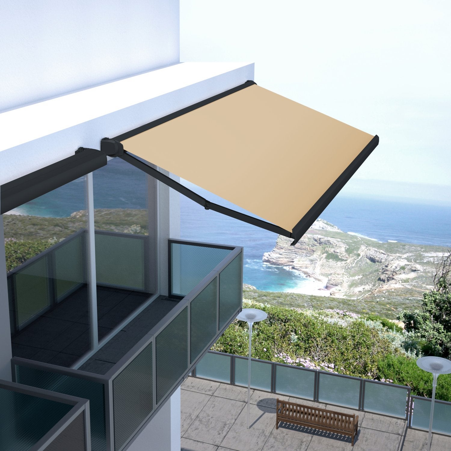 Le store est manoeuvrable grâce à une télécommande sans fil fonctionnant par radio transmission. Offrant des fonctionnalités intéressantes avec un système contre la surchauffe et le repositionnement automatique de la toile, le moteur permet également le réglage de l'ouverture et de la fermeture du store comme vous le souhaitez. Doté d'une manivelle de secours, le store pourra être utilisé en cas de coupure électrique.