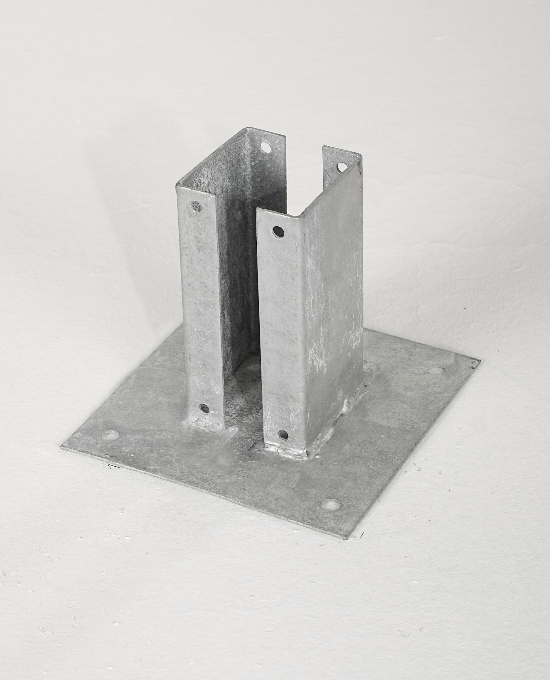 Support - Pied Mural à fixer pour poteau rainuré de section 7x7 cm Utilisation : En extérieur sur mur fixe (à visser ou à boulonner) – pour la réalisation de clôture et structure légère pour le jardin Matériaux : Acier galvanisé à chaud – épaisseur +/- 2 mm Dimensions intérieures du Support - Pied : +/- 71x71x150 mm Rainure : +/- 30x115 mm Dimensions extérieures de la platine : +/- 150x155 mm - équipé de 6 trous de fixation Ø 10 mm Bridage du poteau sur le Support - Pied grâce aux 4 trous de fixation Ø 10 mm Gamme : Jardin - Les structures doivent être correctement conçues et mise en oeuvre avec jambe de force si nécessaire