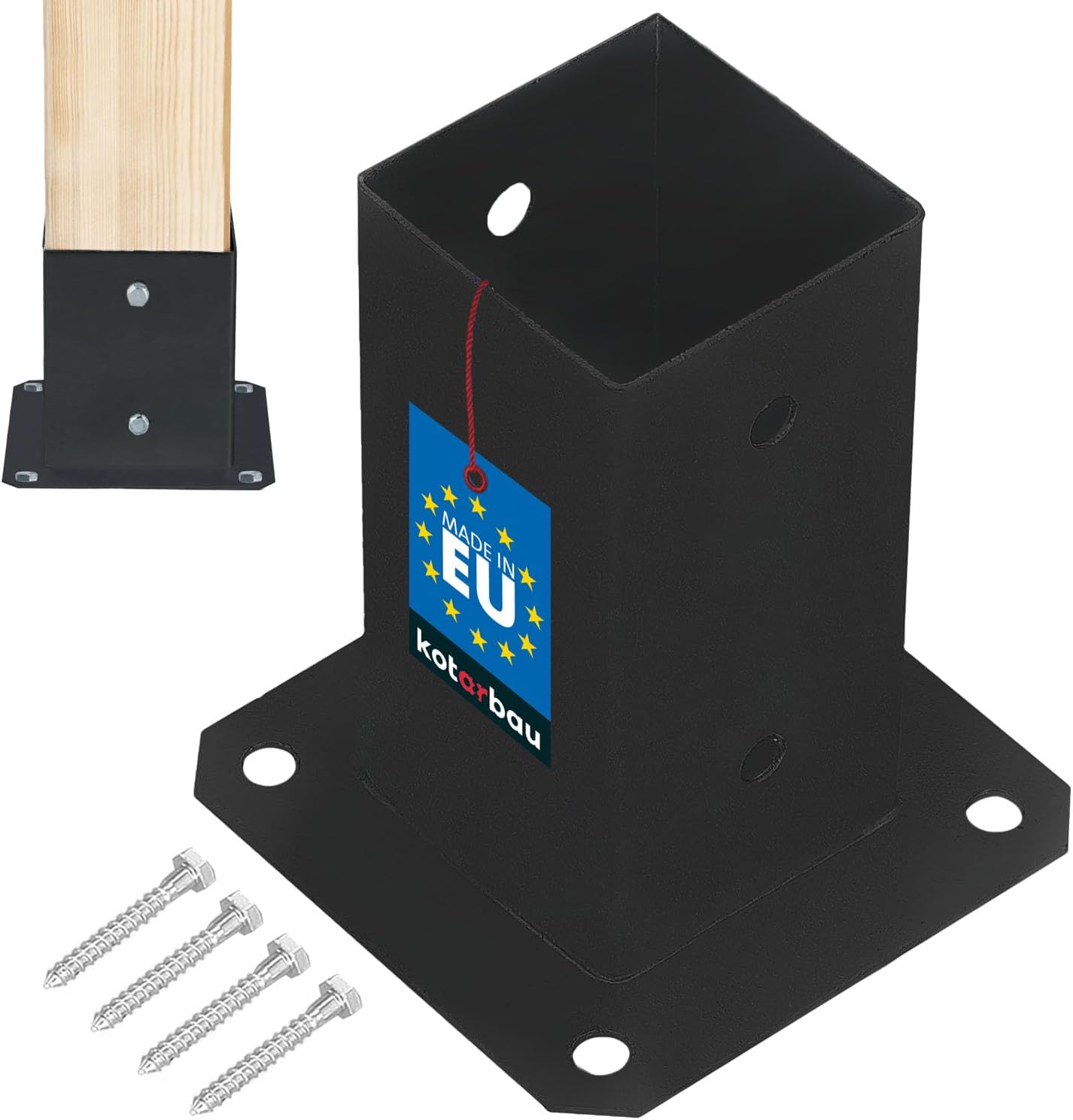 Support de poteau à fixer 70 x 70 mm en acier galvanisée - Pied de poteau carré noir - KOTARBAU