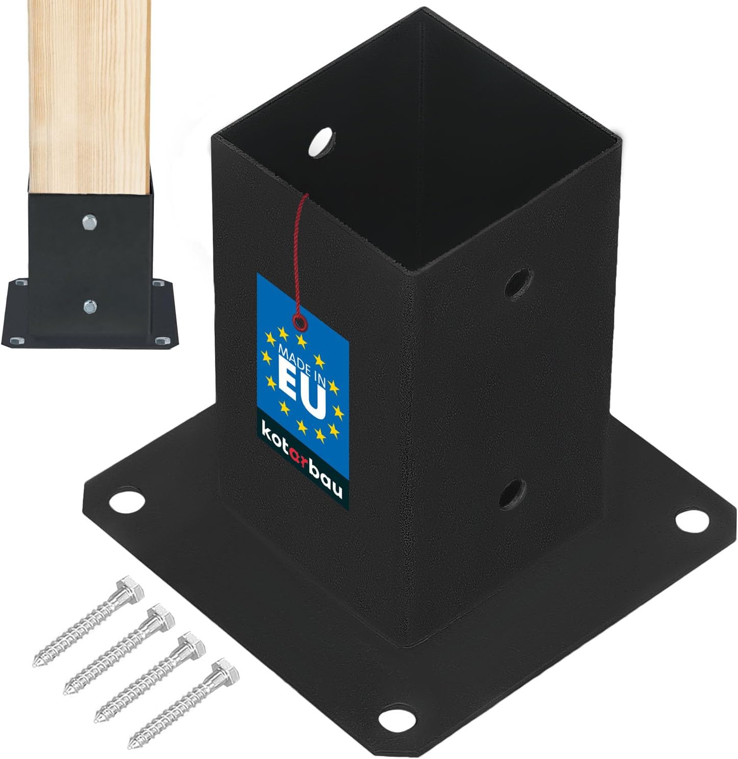 Support de poteau à fixer 80 x 80 mm en acier galvanisée - Pied de poteau carré noir - KOTARBAU