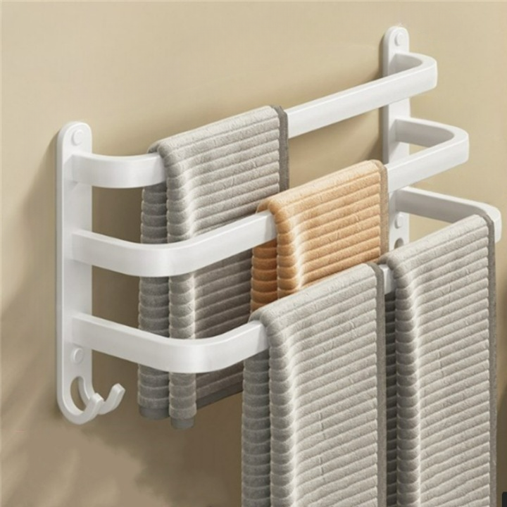 Support Mural pour Serviettes Blanc - Range-Serviettes Suspendu pour Salle de Bain, Sans Perçage - Organisation et Élégance Triple 50cm