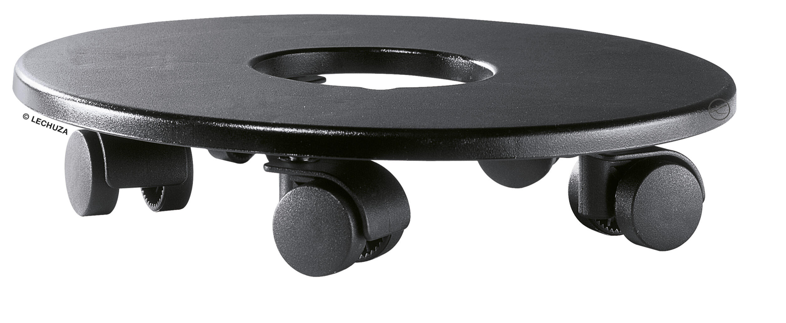 Support pot avec roulette LECHUZA Classico/quadro rond noir, H.5.8 x l.26 cm