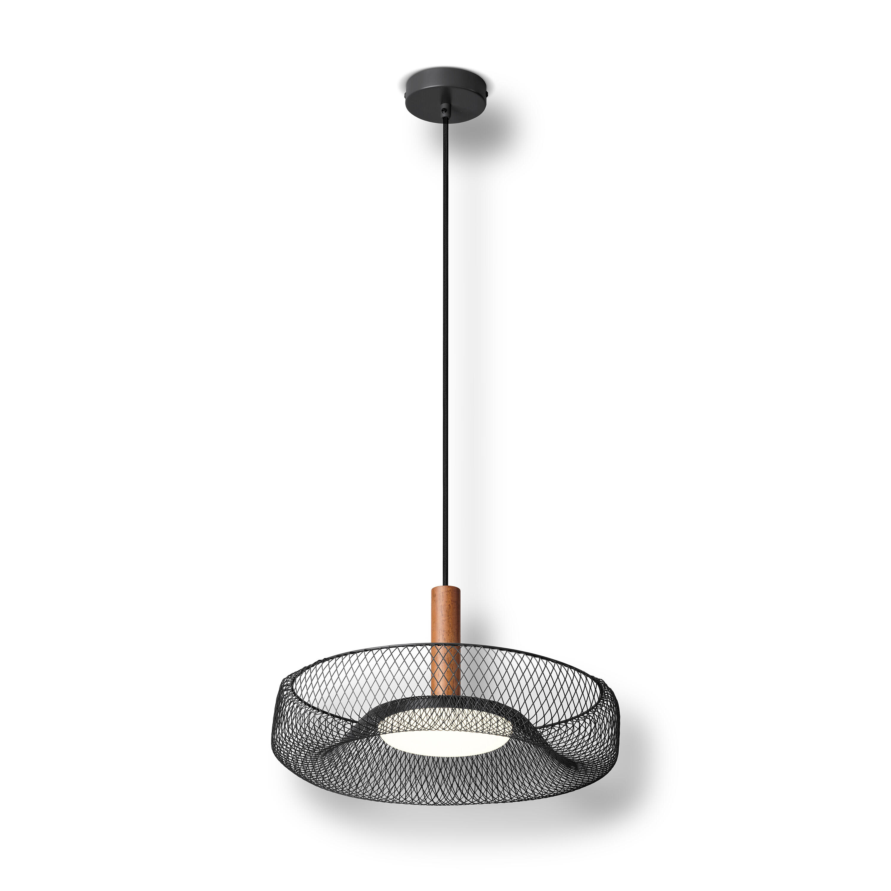 Suspension Decor mesh, acier / bois, noir, Diam.40 cm LED