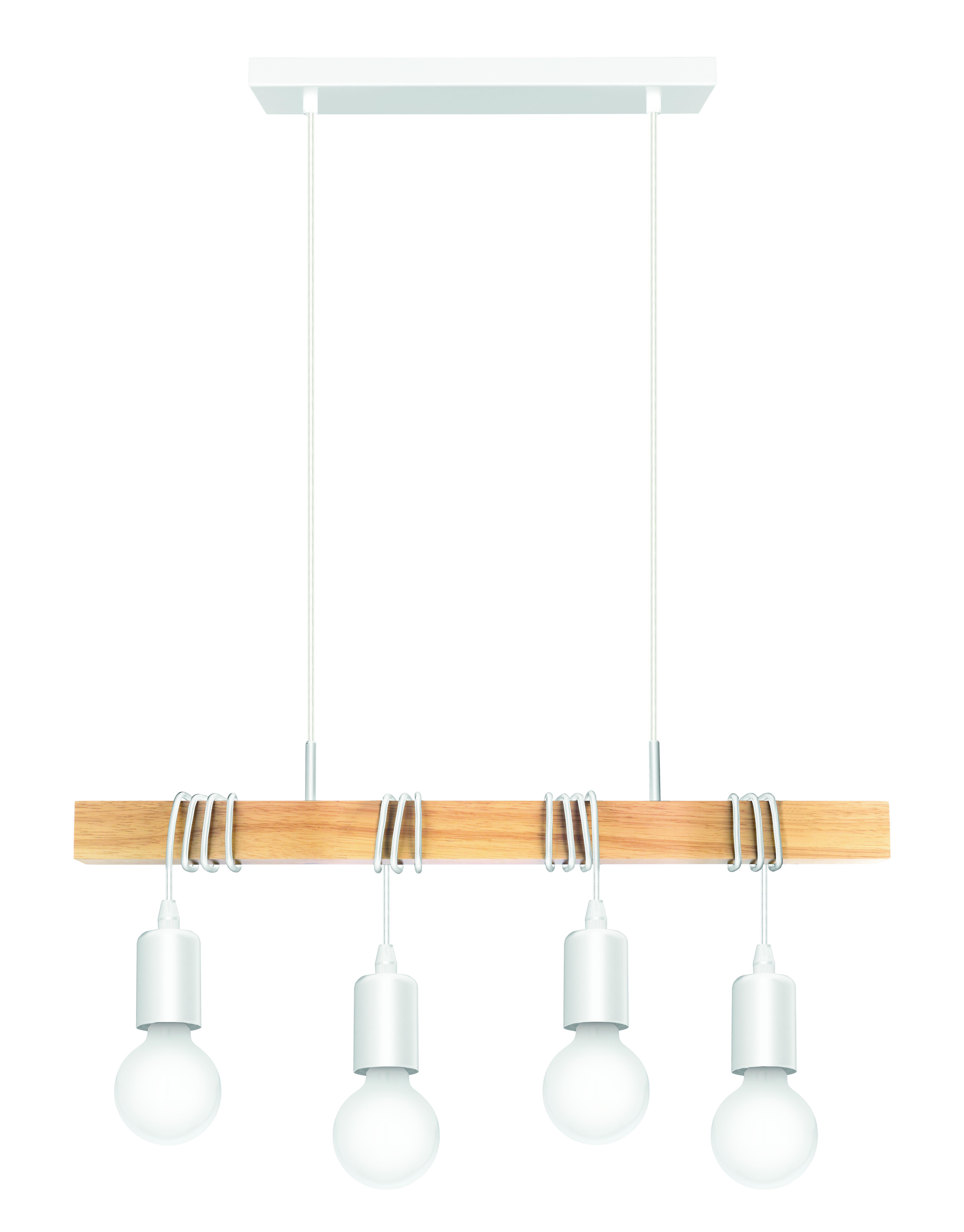 Une suspension plafonnier design et d'une belle simplicité. Elle allie en beauté la chaleur du bois naturel et la sobriété du blanc. Un luminaire qui apporte un vrai "plus" dans le séjour ou la cuisine, à associer à 4 ampoules à filament apparent et de formes différentes pour un effet super déco (ampoules E27 non fournies, vendues sur leroymerlin.fr). A noter, si vous souhaitez coordonner votre décoration, retrouvez d'autres modèles Townshend sur notre site.