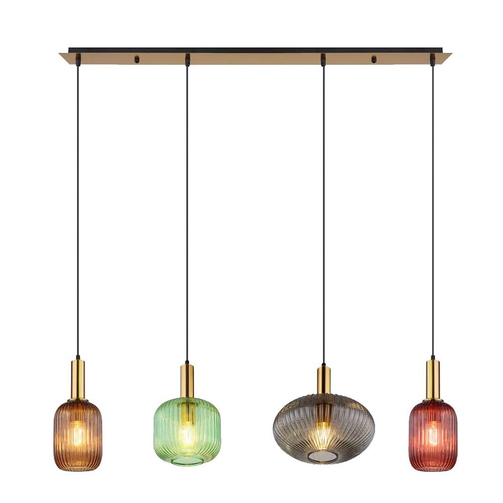 Suspension unique avec 3 abat-jours en verre cannelé, multicolore, diamètre 115 cm