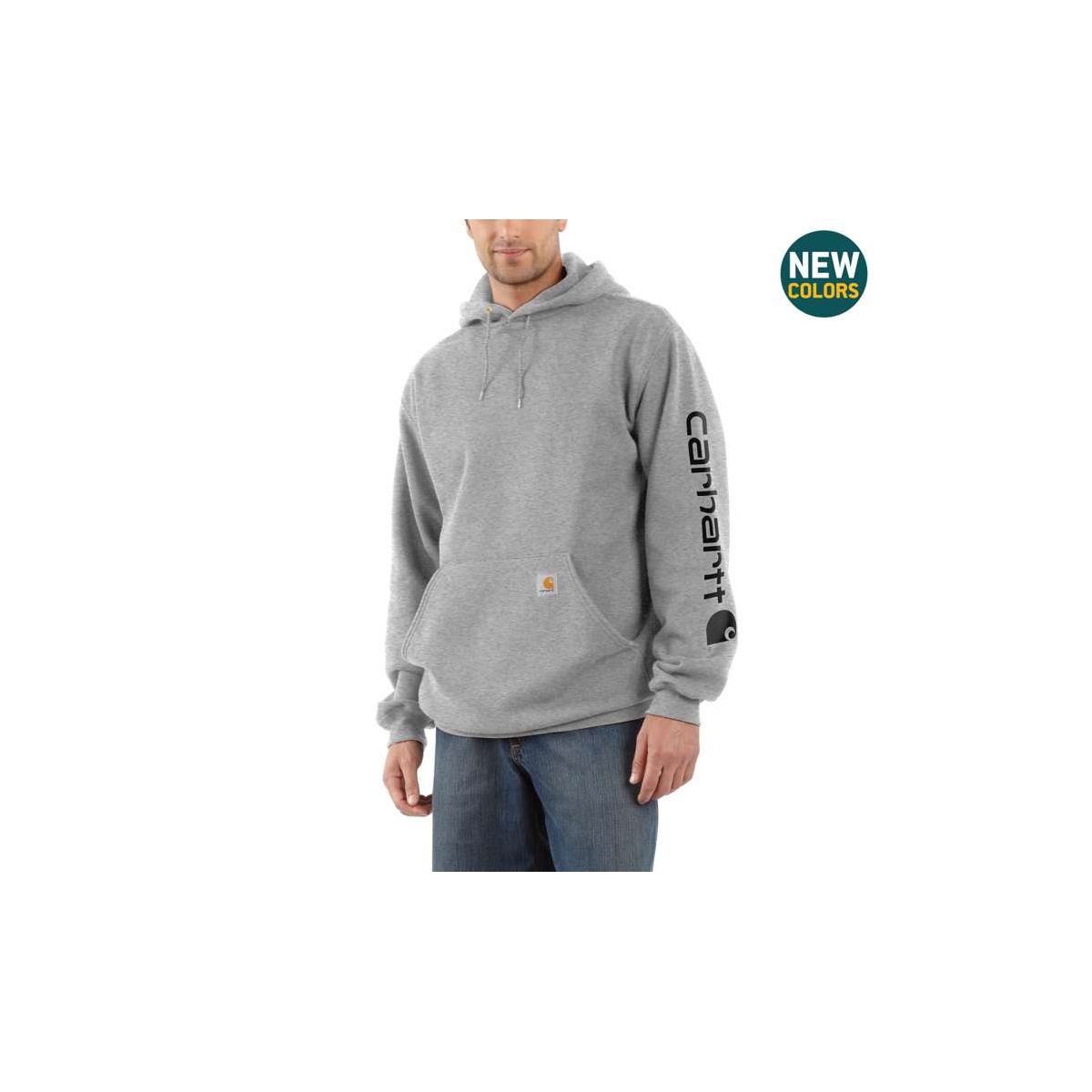 Le Sweat-shirt à capuche Gris Noir de la marque Carhartt est composé de coton souple avec une poche kangourou et une capuche réglable par lacet.