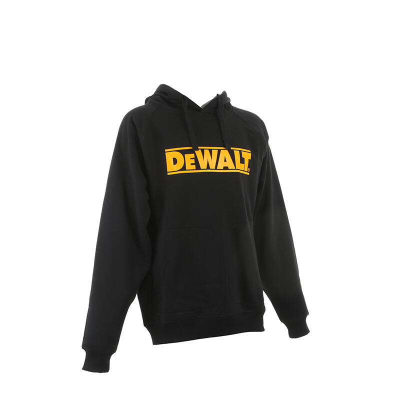 Sweatshirt à capuche DeWALT. 35 % coton / 65 % polyester, 330 g/m². Grand logo DeWALT sur la poitrine. Grande poche frontale pour les mains. Cordon de serrage pour la capuche.