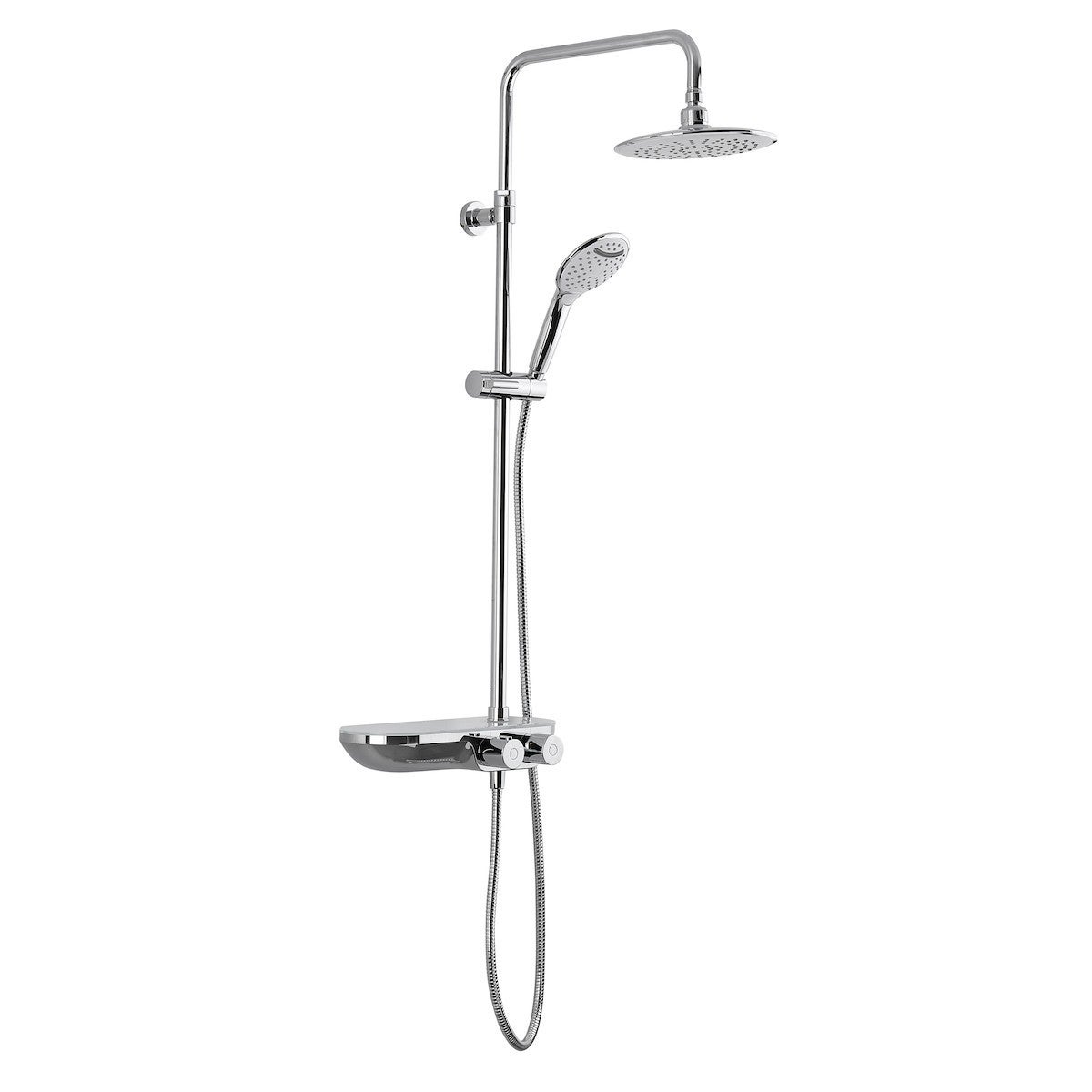 Swiss Aqua Technologies Colonne douche, Douchette 3 jets, mitigeur thermostatique, Barre réglable en hauteur, Chrome/Blanc SATSSTKP