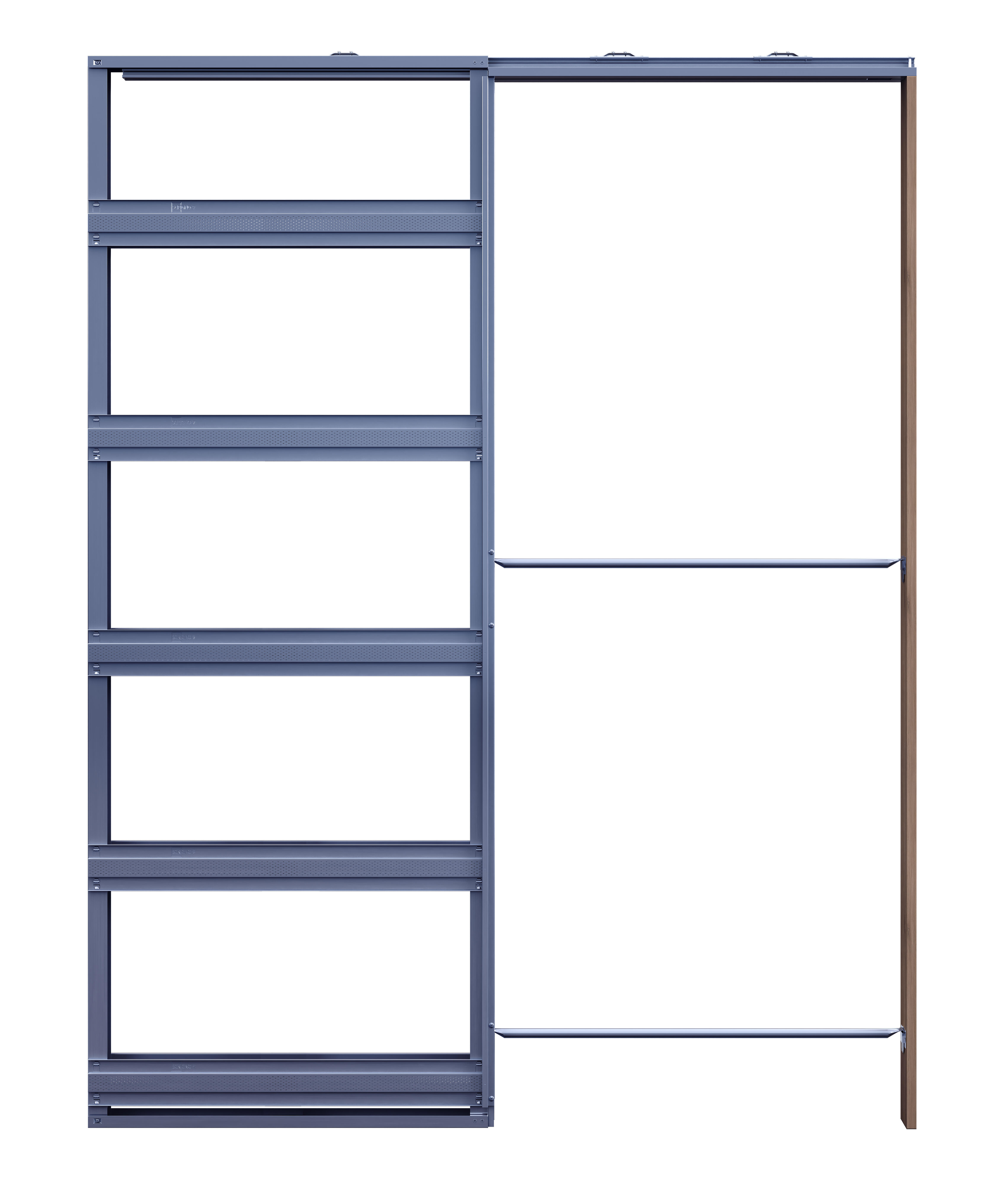 Le galandage à caisson ajouré Pronto est simple, rapide et facile à installer. Sa structure avec traverse micro-perforées facilite la pose des plâque de plâtre et l'installation de la structure dans la cloison . Capable de faire coulissé des portes jusqu'à 120 kg, il est aussi équipé d'une système d'amortissement en ouverture et en fermeture de série. Pronto est garantie 20 ans.