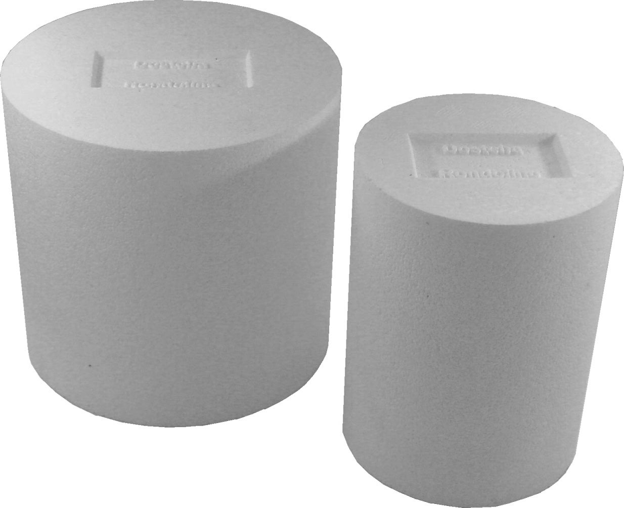 Cylindre en mousse de polyuréthane noire de forte densité (300kg/m3)de 70mm de diamètre et d'épaisseur identique à l'isolant mis en place (80, 100, 120, 140mm), permet la fixation sans pont thermique de charge moyenne avec une forte résistance à la compression (descente pluviale, arrêt de volets), permet ainsi des reprises de charges (barre de renfort de marquise) dans un système d'isolation par l'extérieur en polystyrène expansé sous enduit