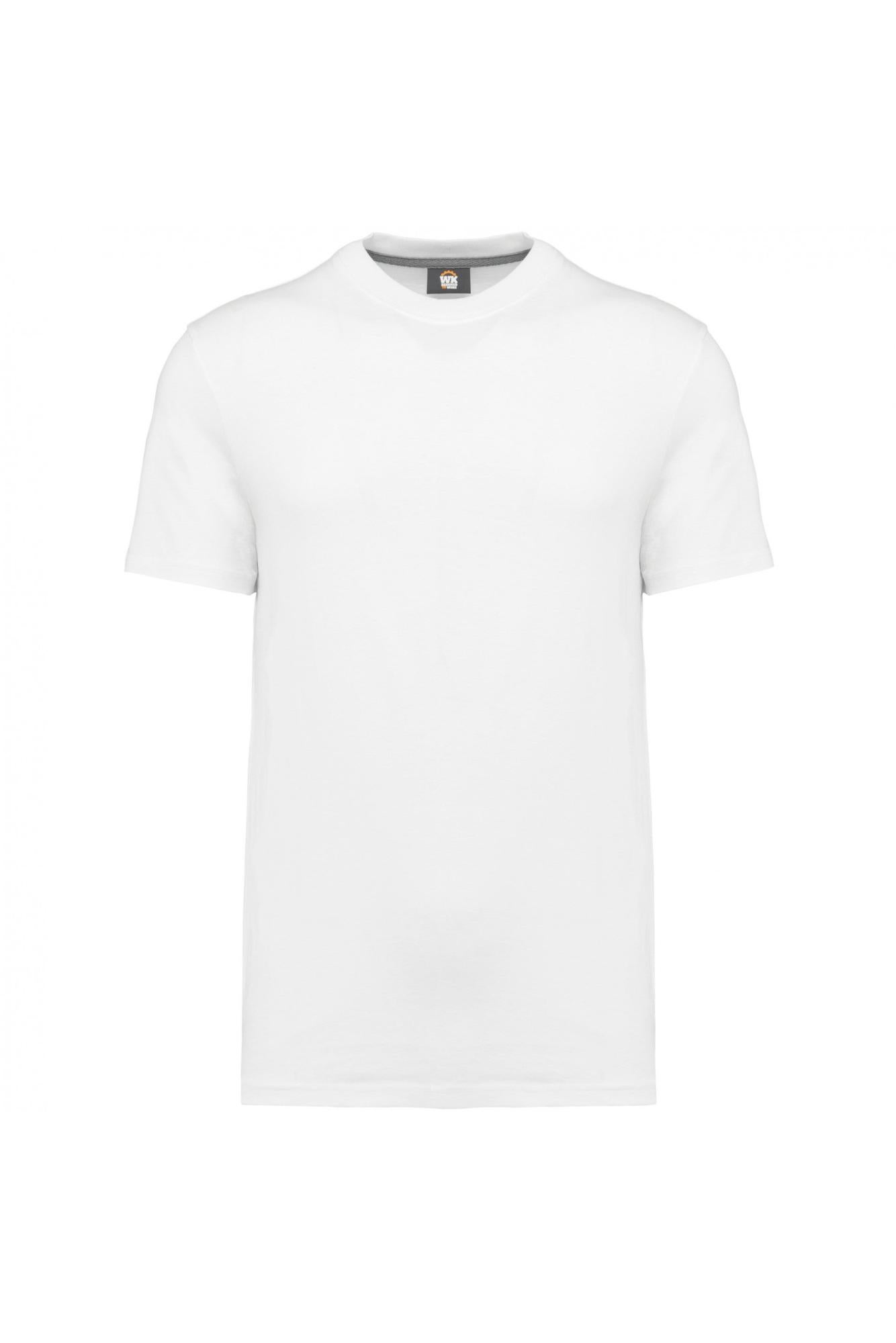 Coloris unis : 100% coton biologique. Coloris chinés : 92% coton biologique / 8% polyester. Coloris fluorescents : 65% polyester recyclé / 35% coton. Lavage industriel ISO 15797 (10 lavages). Coupe droite. Encolure ronde en bord-côte 2x1 avec élasthanne et bande de propreté orange sur les couleurs unies et chinées et ton sur ton sur les couleurs fluorescentes. Finition double aiguille au bas de manches et de vêtement. Etiquette de marque Tear Away. Certifié STANDARD 100 by OEKO-TEX®N° CQ1007/7, IFTH.