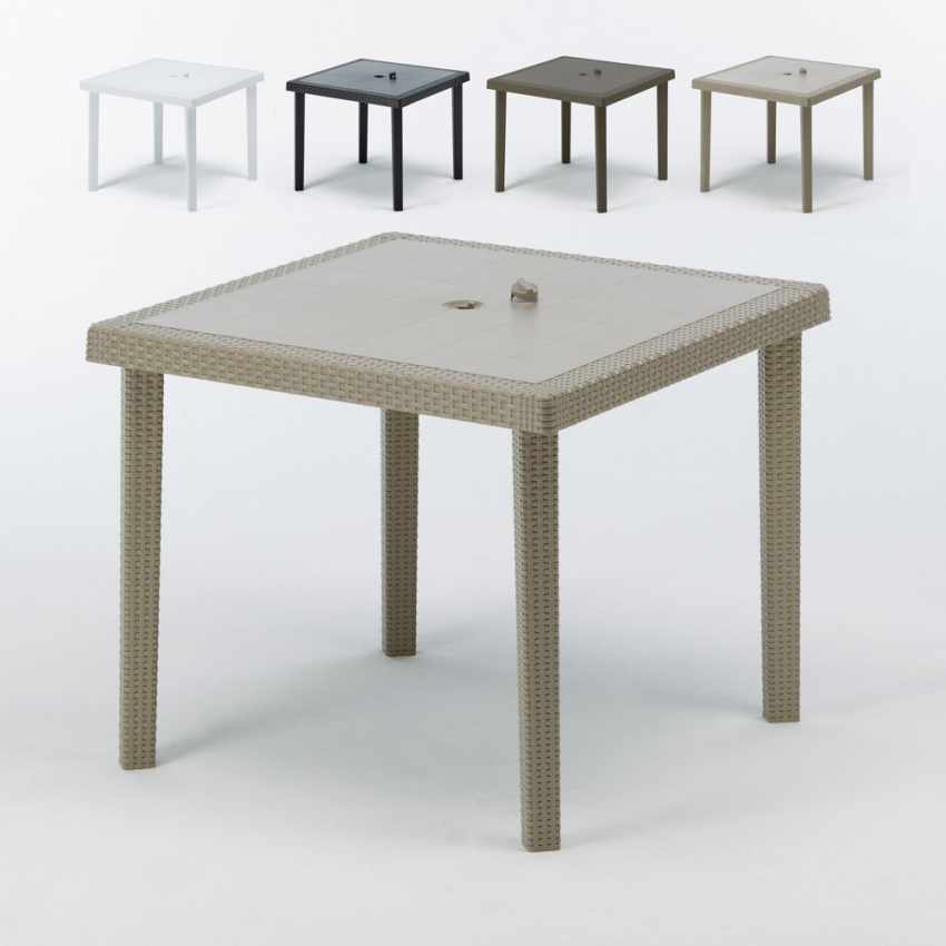 Grâce à son design simplement élégant, la table à manger Boheme se combine facilement avec tout type de mobilier et est la solution parfaite pour compléter n'importe quel espace extérieur, que ce soit à la maison pour recevoir amis et famille immergés dans la verdure de votre jardin ou pour passer du temps sur la terrasse pour se détendre, ou un espace conçu pour le public, comme les bars, les pubs, les restaurants, les hôtels, les piscines, pour les clients qui veulent prendre un verre ou une collation en plein air. La table mesure 90x90cm et est entièrement réalisée en polyrotin 100% Made in Italy de qualité supérieure, soigneusement sélectionné et travaillé avec des détails entrelacés raffinés typiques du rotin qui donnent à l'espace extérieur un aspect encore plus agréable et naturel. Conçue pour durer dans le temps, la table résiste parfaitement aux agents atmosphériques, aux rayons UV et même si elle est laissée à l'extérieur toute l'année, elle ne perd pas sa couleur et conserve longtemps ses propriétés. La structure de la table est plus solide et robuste que les tables en plastique traditionnelles, mais elle est toujours légère et facile à déplacer en plus d'être modulable, de plus elle est équipée au centre d'un trou pour y glisser un parasol pendant l'été.