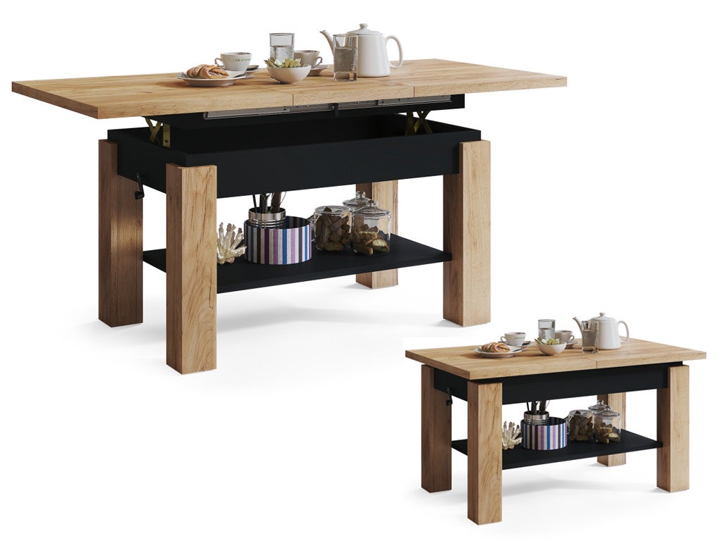 TABLE BASSE ACTORIA NOIR BOIS RELEVABLE ET EXTENSIBLE JUSQU'A 150 CM