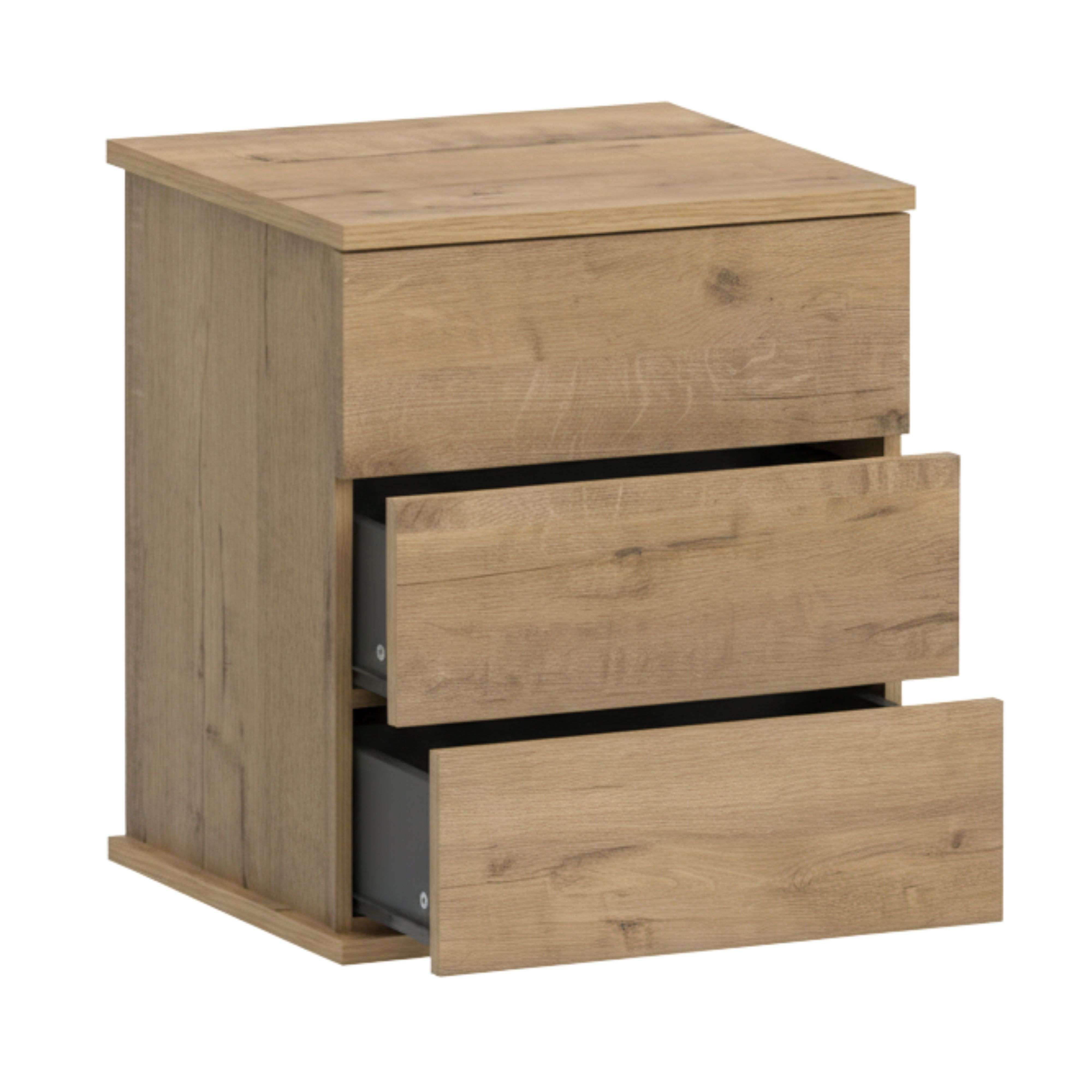 Table de chevet 3 tiroirs Dana, meuble de chambre contemporain, couleur chêne doré, 41 x 49 cm