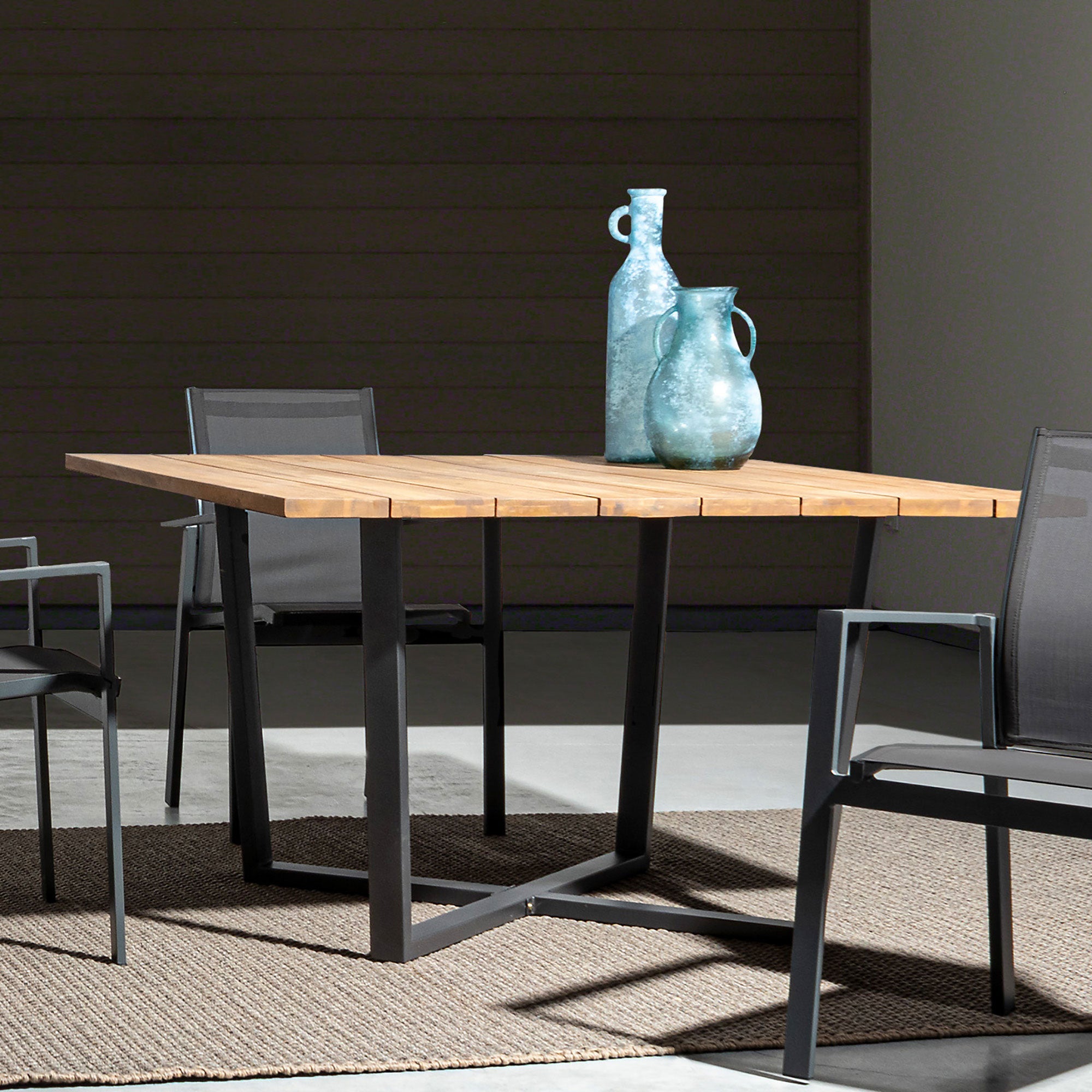 Table de jardin carrée 130x130x75 cm en acacia huilé et acier