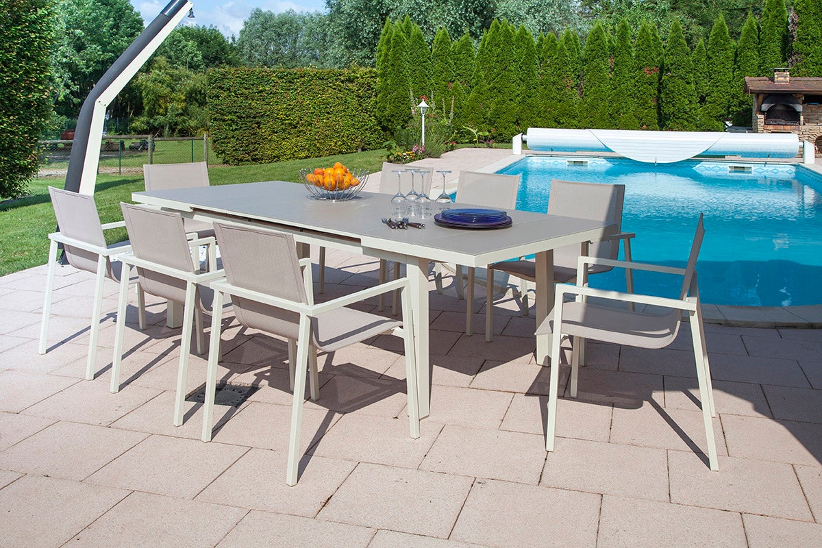 Table de jardin extensible 8-10 personnes Ibiza gris perle JARDILINE 180/240 cm
