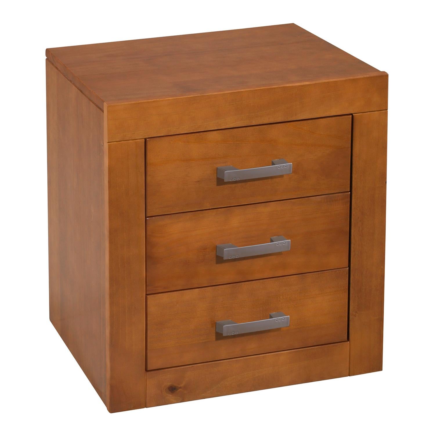 MOBLIT KYNUS Table de nuit 3 tiroirs,pin massif , couleur cerisier , mesure 55x50x35 cm (hauteur-largeur-profondeur)