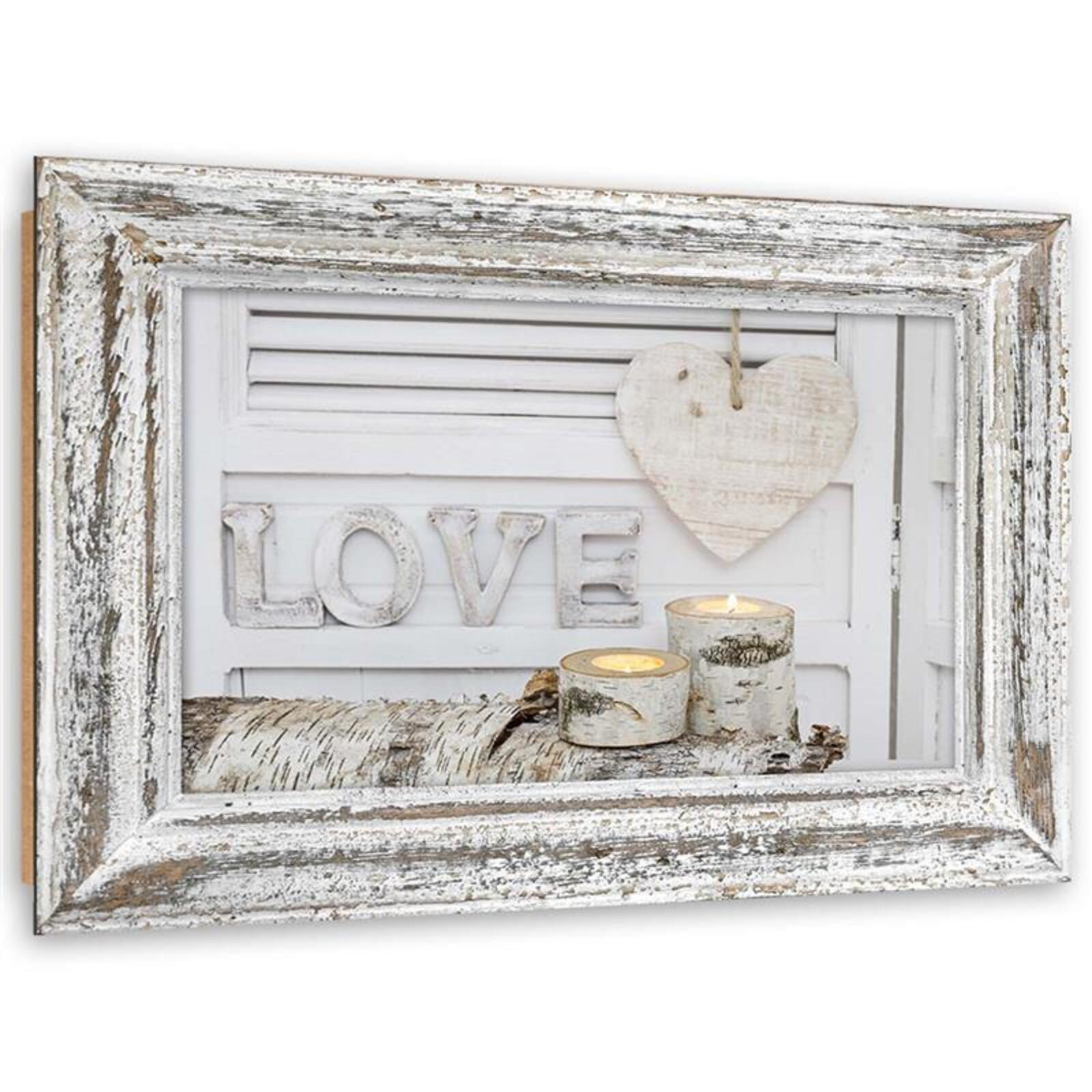 Tableau bois inscription amour bouleau bois rustique bougies coeur - 120 x 80 cm