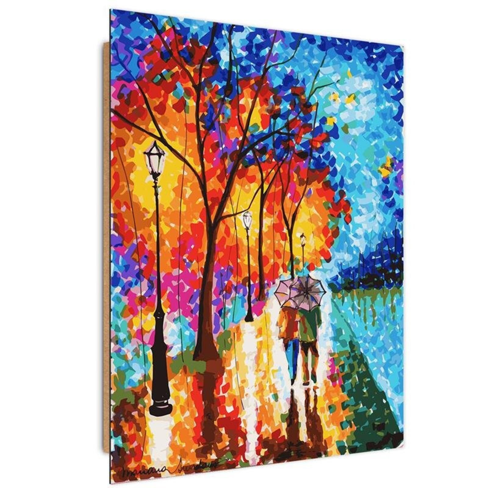 Tableau bois peinture promenade d'automne - 60 x 80 cm
