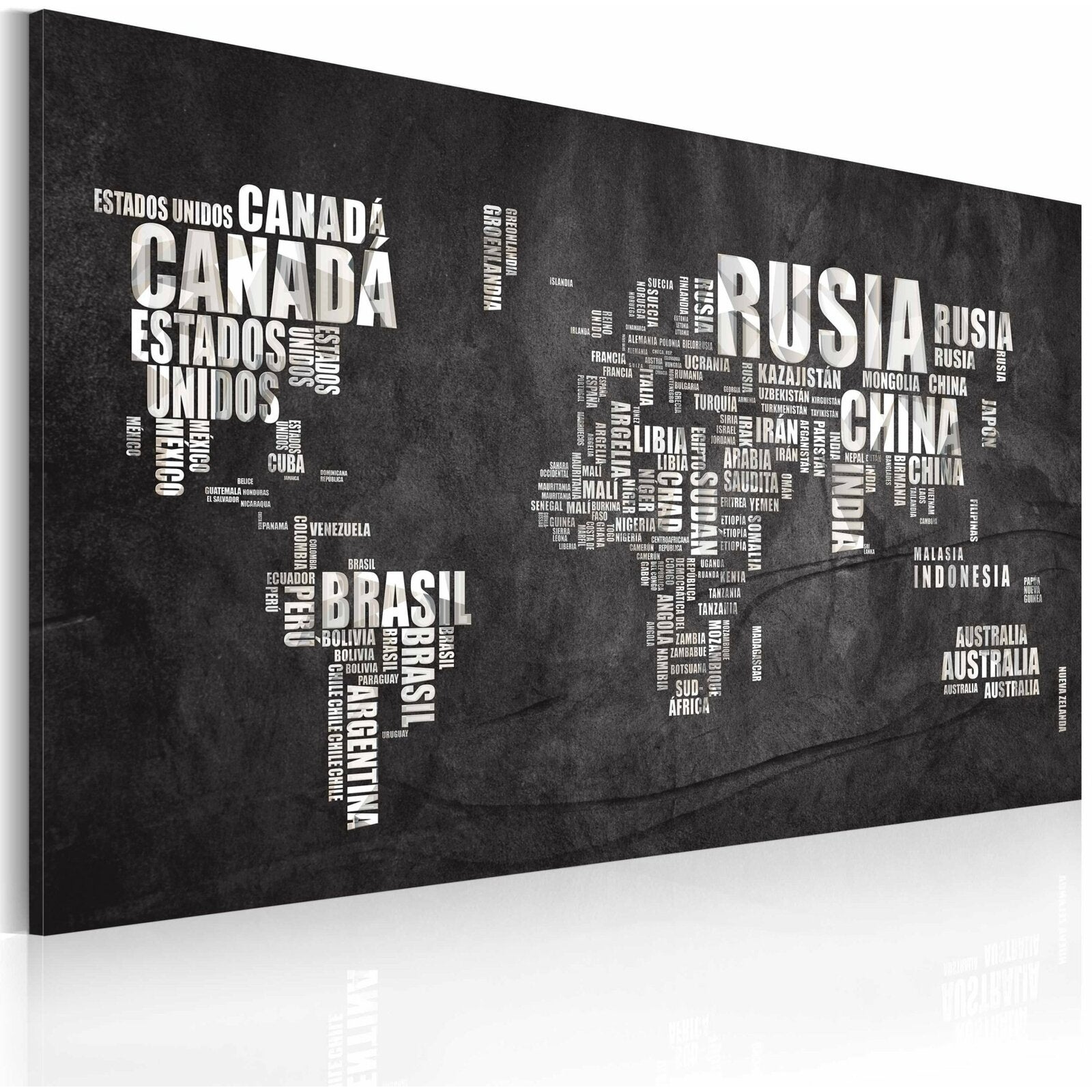 Tableau d'une grande qualité 'Carte du Monde (langue espagnole)' est imprimé sur une vraie toile à peindre. C'est l'un de plusieurs motifs originaux à commander chez notre boutique. Impression de la plus haute qualité La toile de la plus haute qualité est la résolution appropriée garantissent la netteté idéale et la profondeur des couleurs. Châssis Des encadrements ne sont pas nécessaires. Le tableau est déjà tendu sur un châssis, est prêt à accrocher. Produit sans parfum Les tableaux sont adaptés à les poser dans une chambre à coucher et chambre d'enfant. Protection UV Les couleurs ne se fanent pas, même si le tableau est exposé au soleil. Emballage solide Nos tableaux sont emballés avec du papier bulle et et mis dans un carton épais.